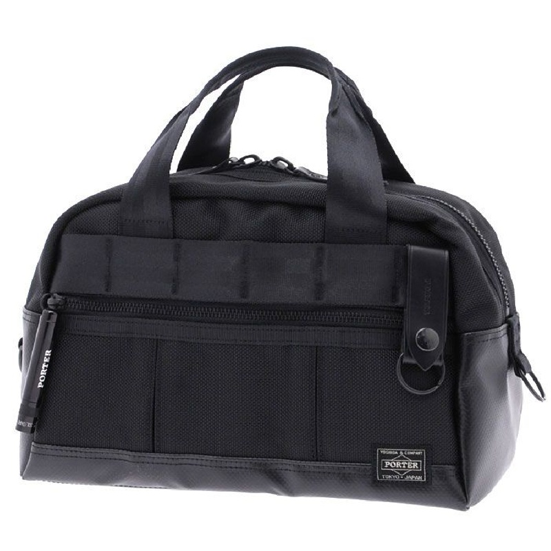 耐熱・耐摩擦・引裂き強度に優れ車のエアバッグや防弾チョッキにも使われるバリスターナイロンをメイン素材に、耐水性の高いターポリンを組み合わせた。黒一色ながら質感の対比が楽しめ、ビジネスからカジュアル、小物まで幅広く揃う。