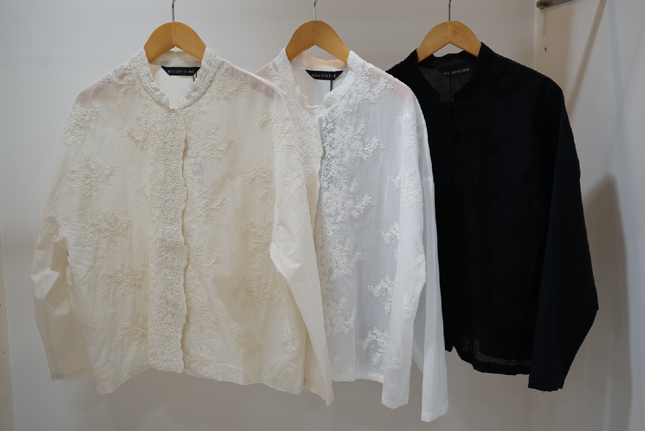 beppintenでも入荷のたびに大好評の、mizuiro indレーススタンドカラーシャツが新色追加で入荷してきました!!