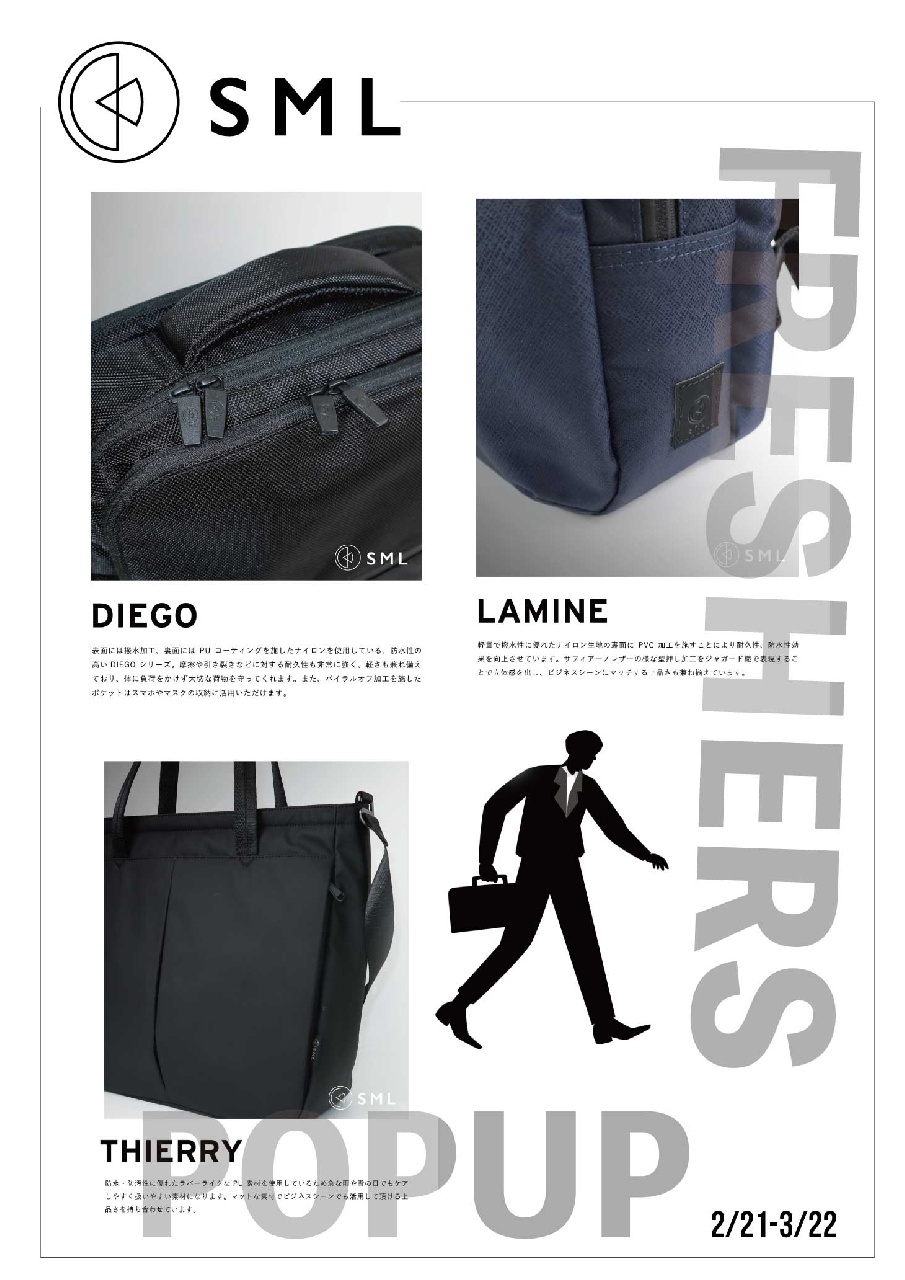 当店で人気のバッグブランド、SMLのビジネスバッグが多数店頭に並びます!