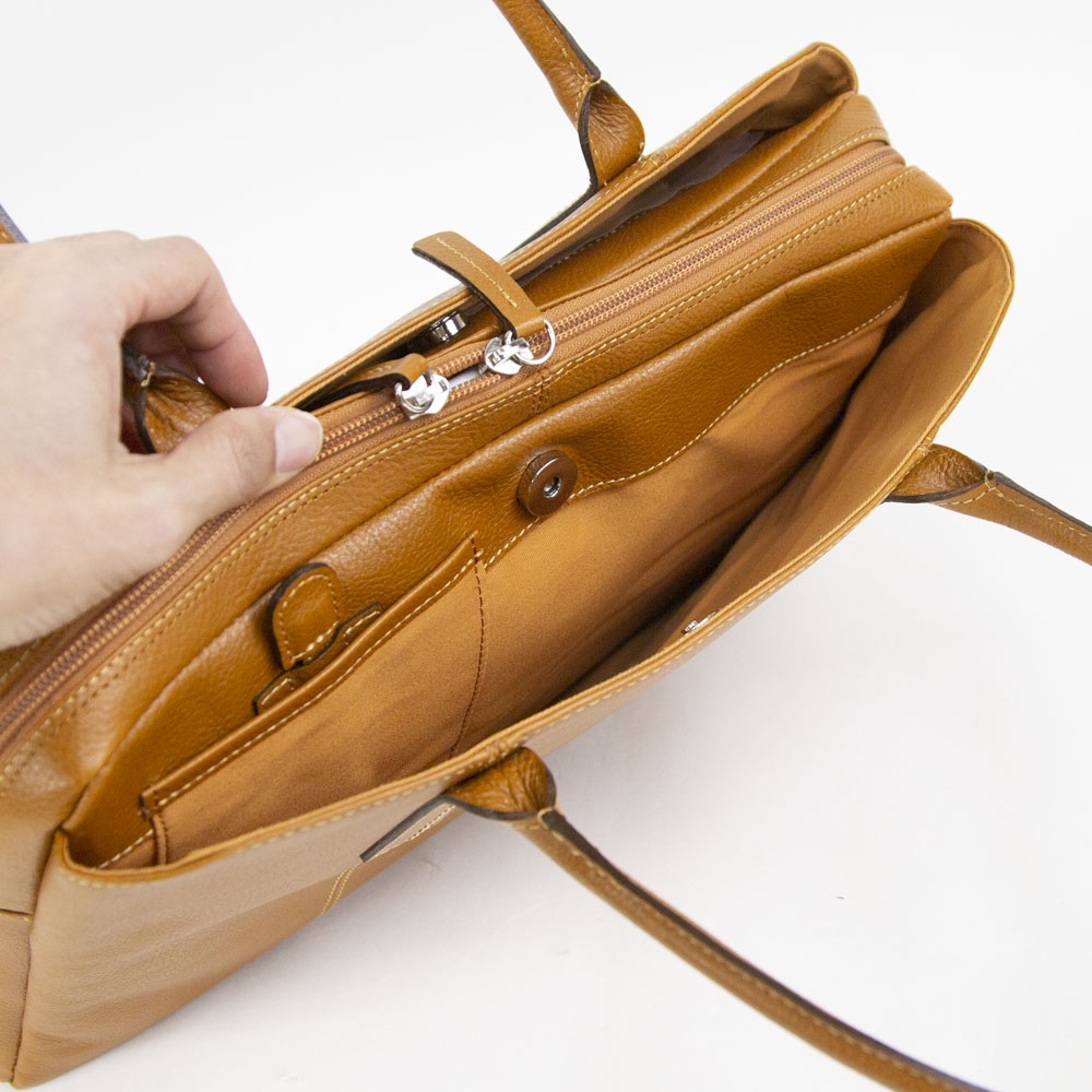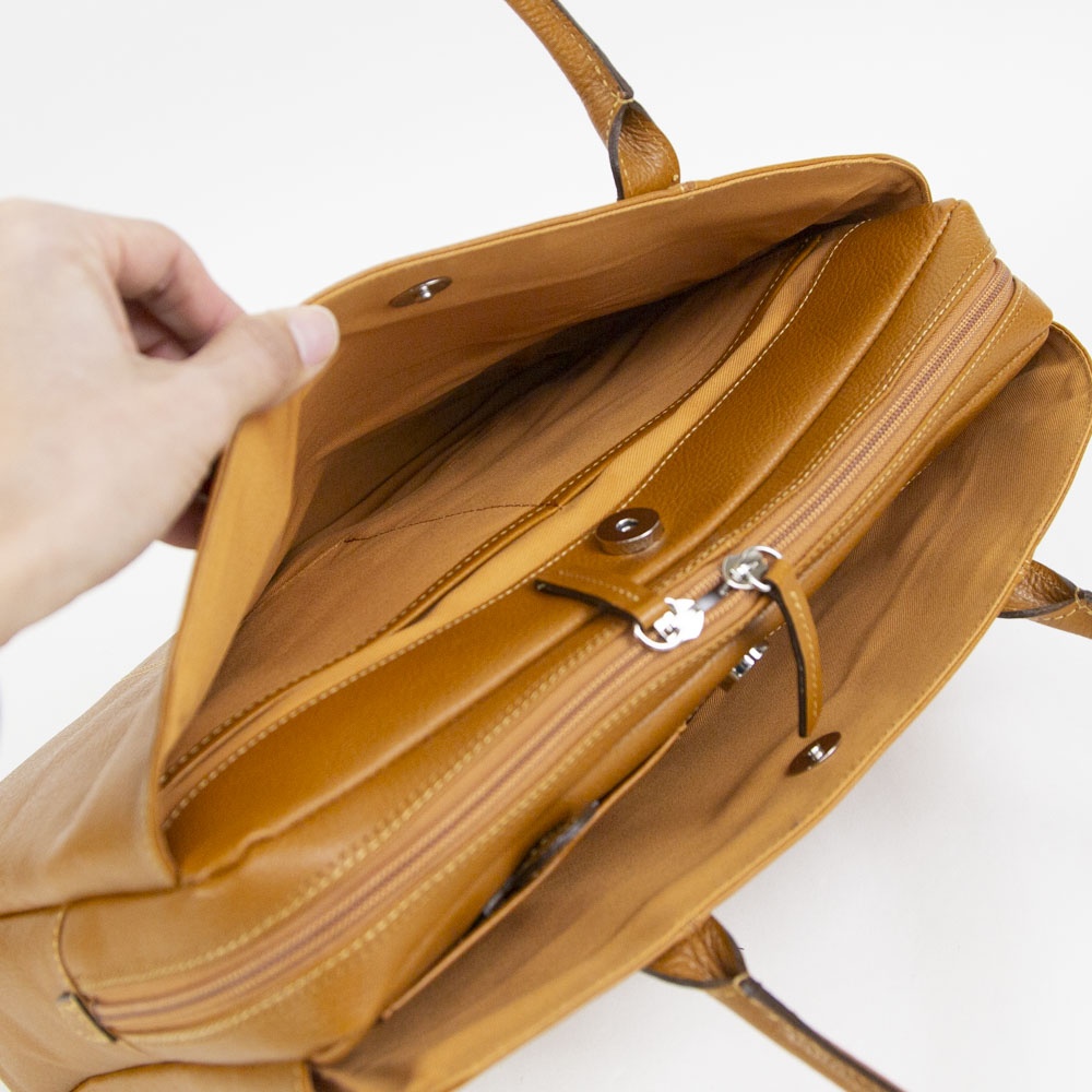 リピーターのお客様もいらっしゃる人気の商品。 A4サイズはもちろん仕事用に◎ 女性らしい優しい印象のビジネス向けにはぴったりなデザイン。 長く気兼ねなく使っていただけます。 両サイドにポケットが付いており、小分けに便利です。 引き手付きのポケットには携帯電話を入れて置くと引くだけで取り出しが可能です。
