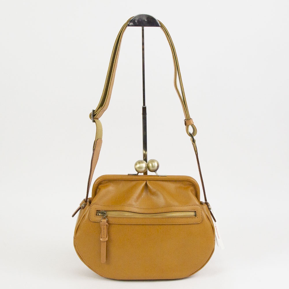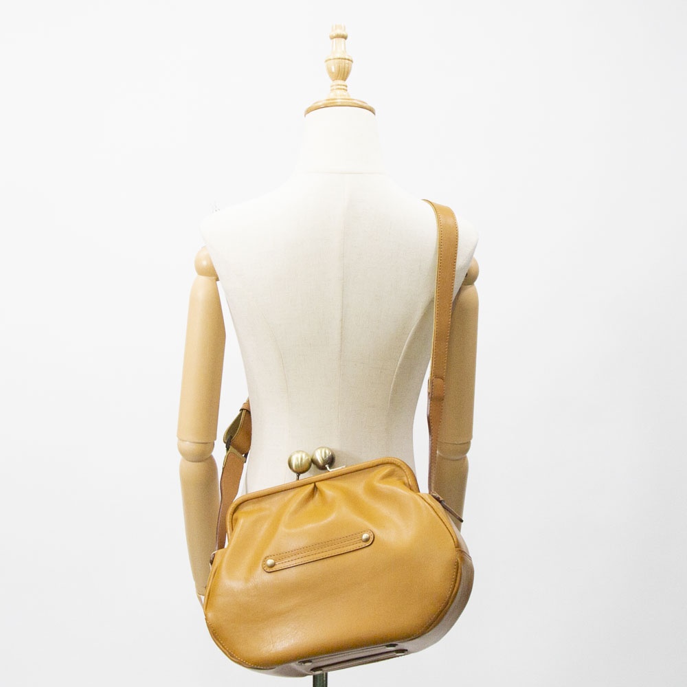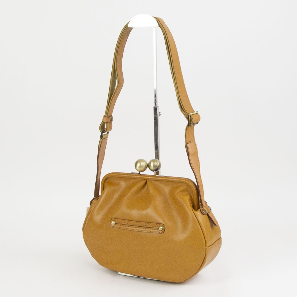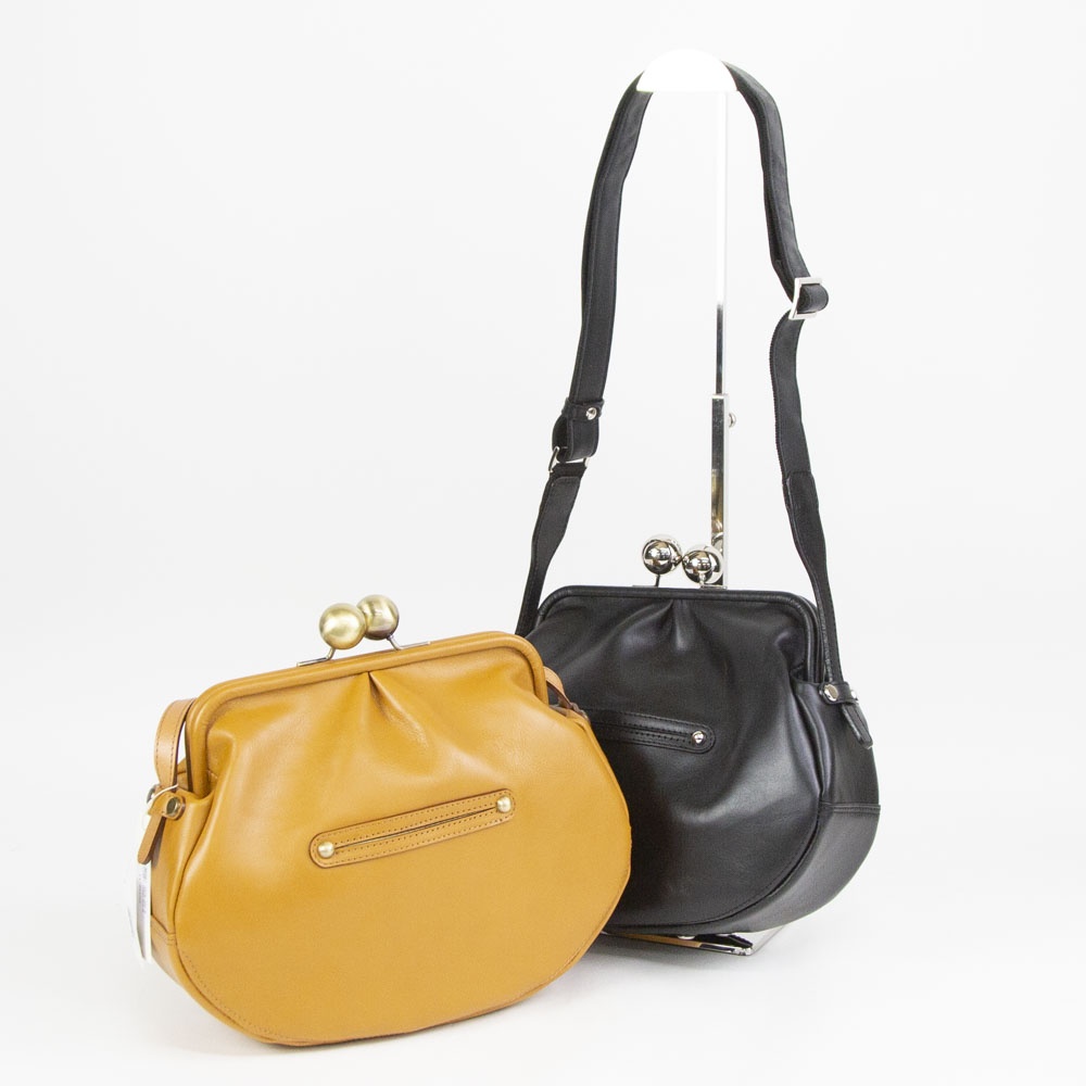 真鍮でできた大きならっきょう玉がアイコンのガマ口バッグです。 かわいい小さな外ポケット付です。 牛革で出来ているので、使うごとに味わいも出てきます。 裏地まで可愛い全年代の女性におすすめのバッグです。 クチ金には真鍮加工を施しており、革同様に経年変化が起きます。 中の裏地もさりげなく可愛く、使うのが毎日楽しくなりそうですね。