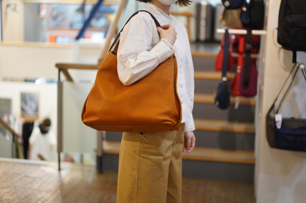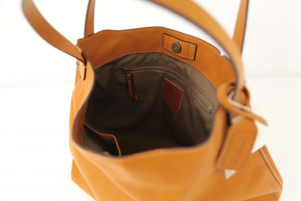 理想のエイジングを追い求め作り上げたヌメ革“ウォッシュガーメント”は、やや固さと厚みがあるレザーで、乾いた表情をした印象ですが、使う程に経年変化で自分だけのトートバッグになる過程を楽しむ事ができます。