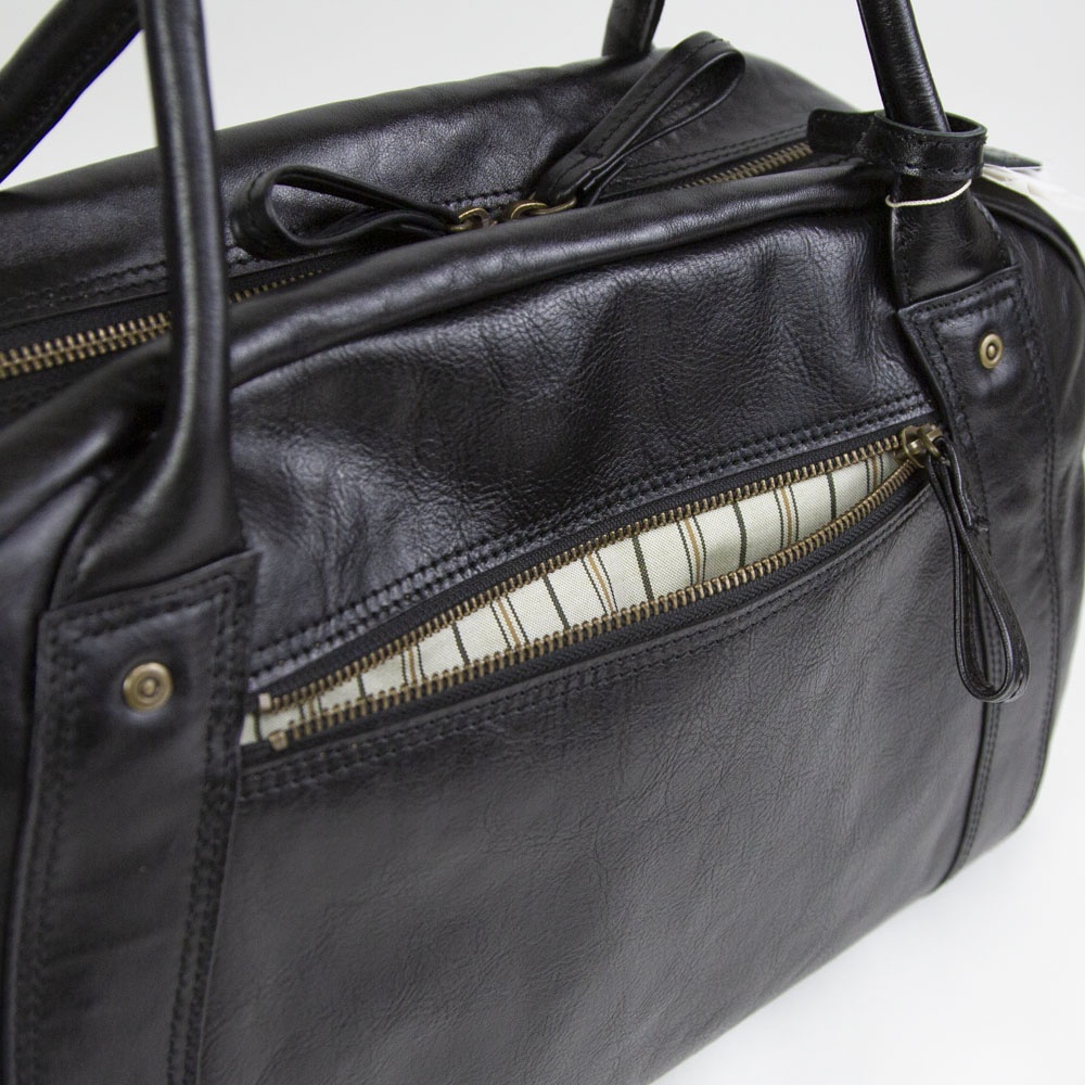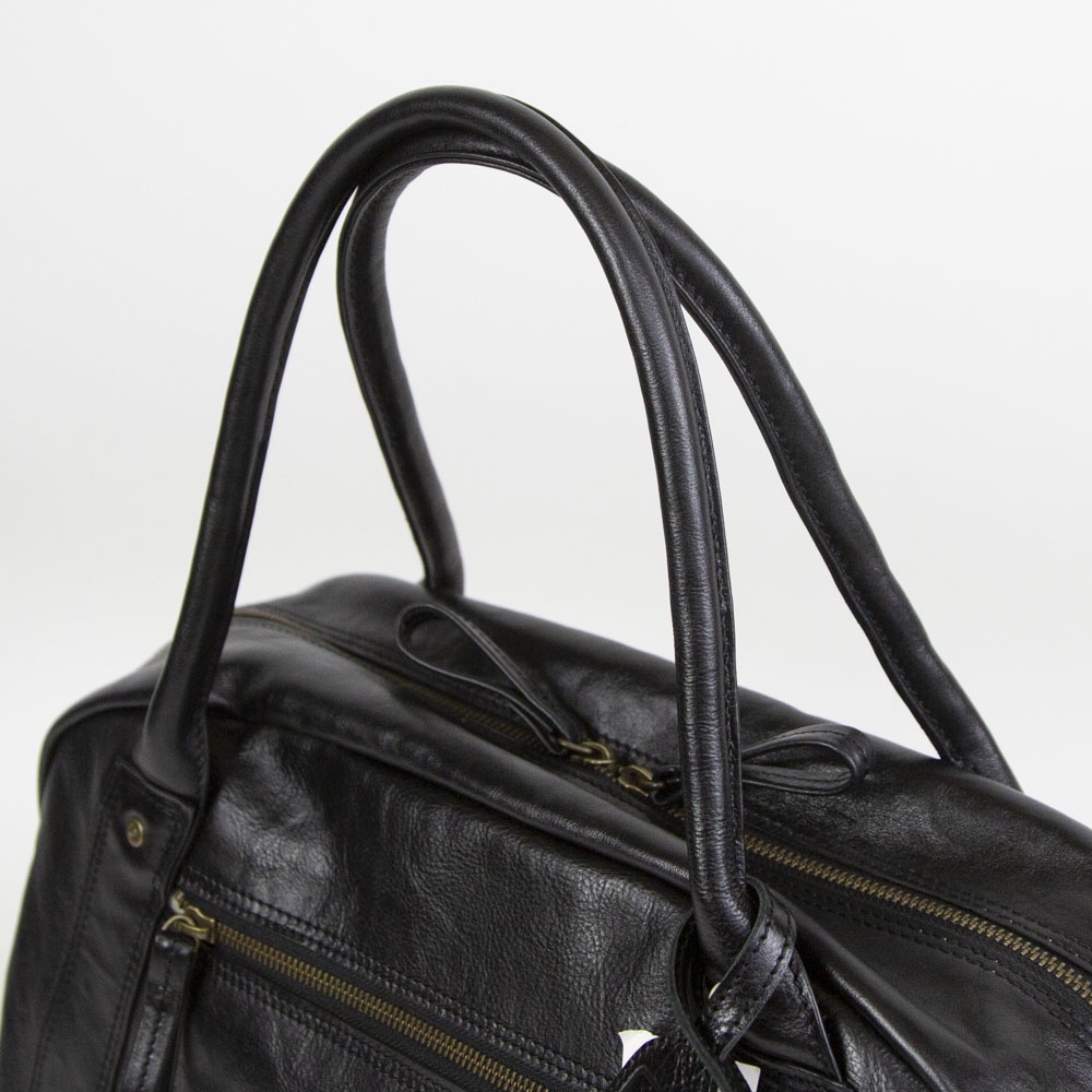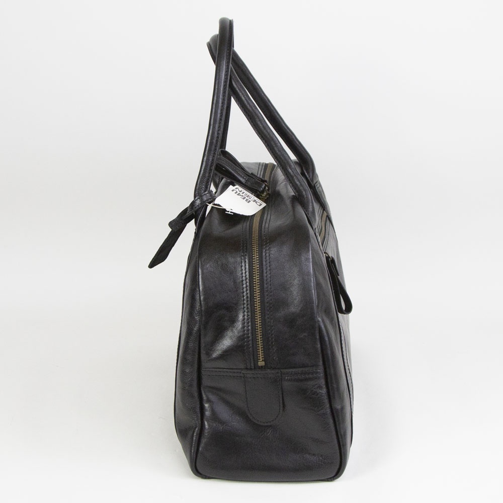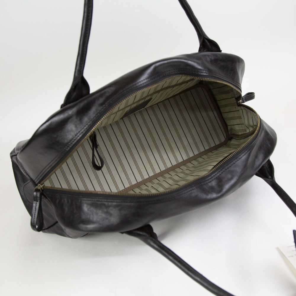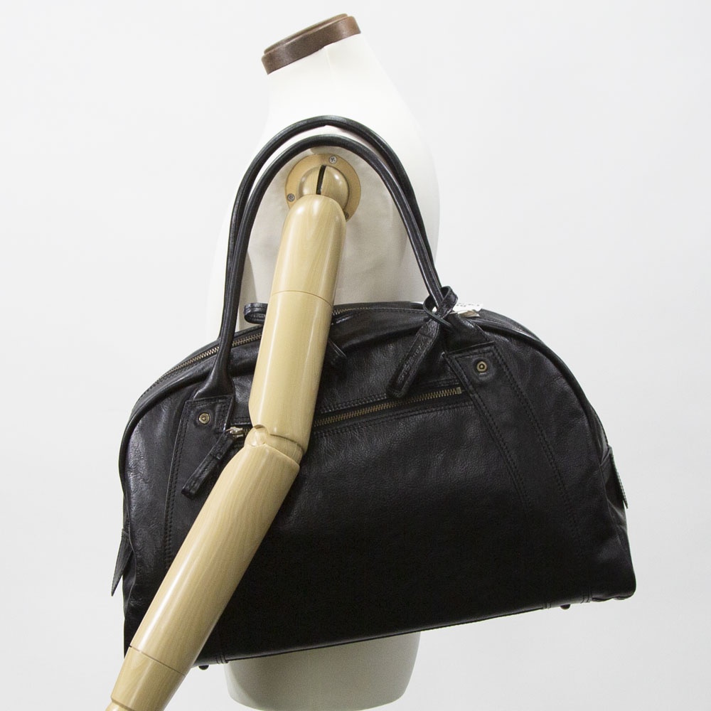 クラシックな佇まいのボストン型バッグです。こちらは、2サイズある中の大きな方となります。 ファスナーは、両開きで、開口部を広く取り尚且つバッグ外側には前後共にファスナーポケットがつけられております。 ハンドルは、優しくソフトに作られており、肩にかけた時の絶妙な長さが計算されています。底板が備わっており、しかも鋲も打ってある為、床置きしても心配ありません。とても軽く、旅行は勿論の事、ビジネスそしてタウンユースとしてもお使いいただけます。