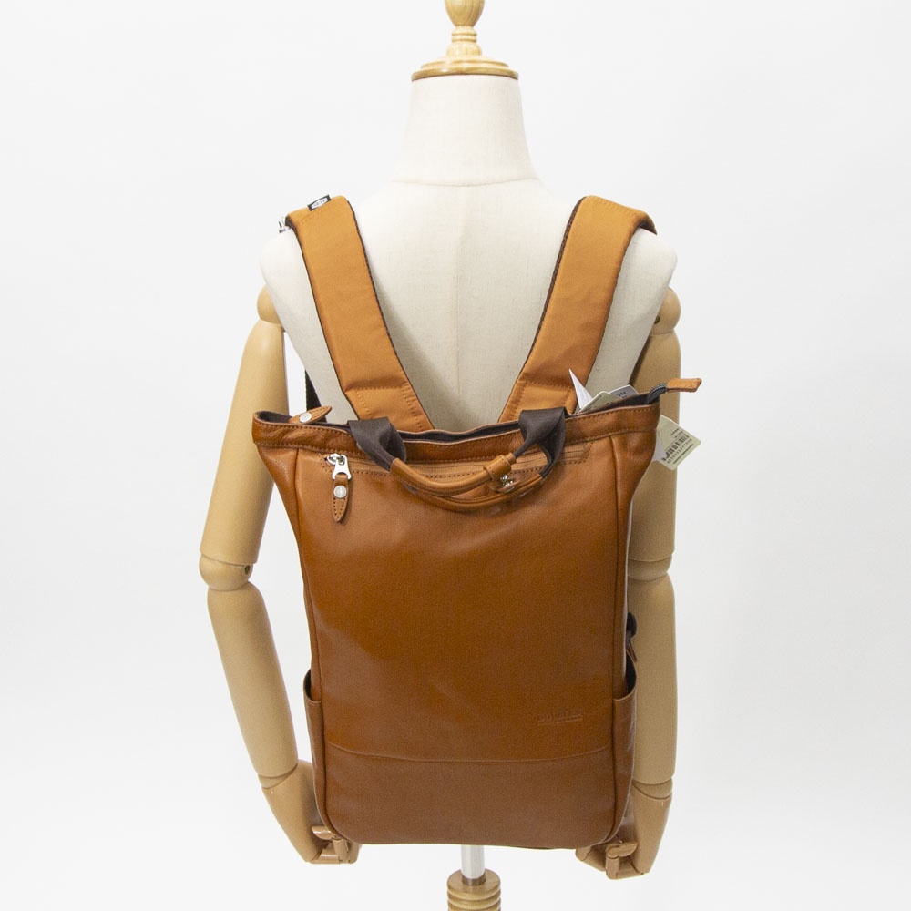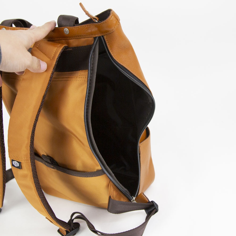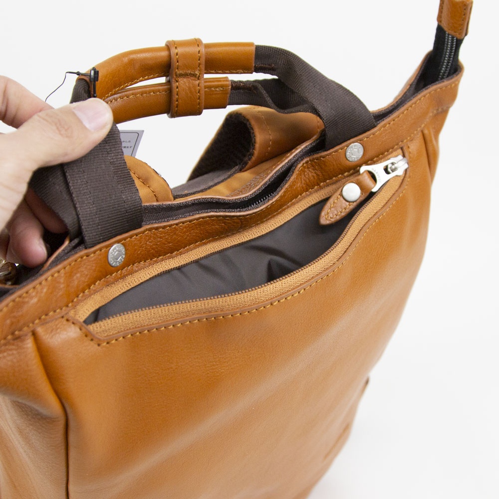 スリムなシルエットと男女兼用シンプルデザインがポイント。見た目以上にポケットが豊富で、口元にハンドルが付いている為、手提げで持つことも可能。