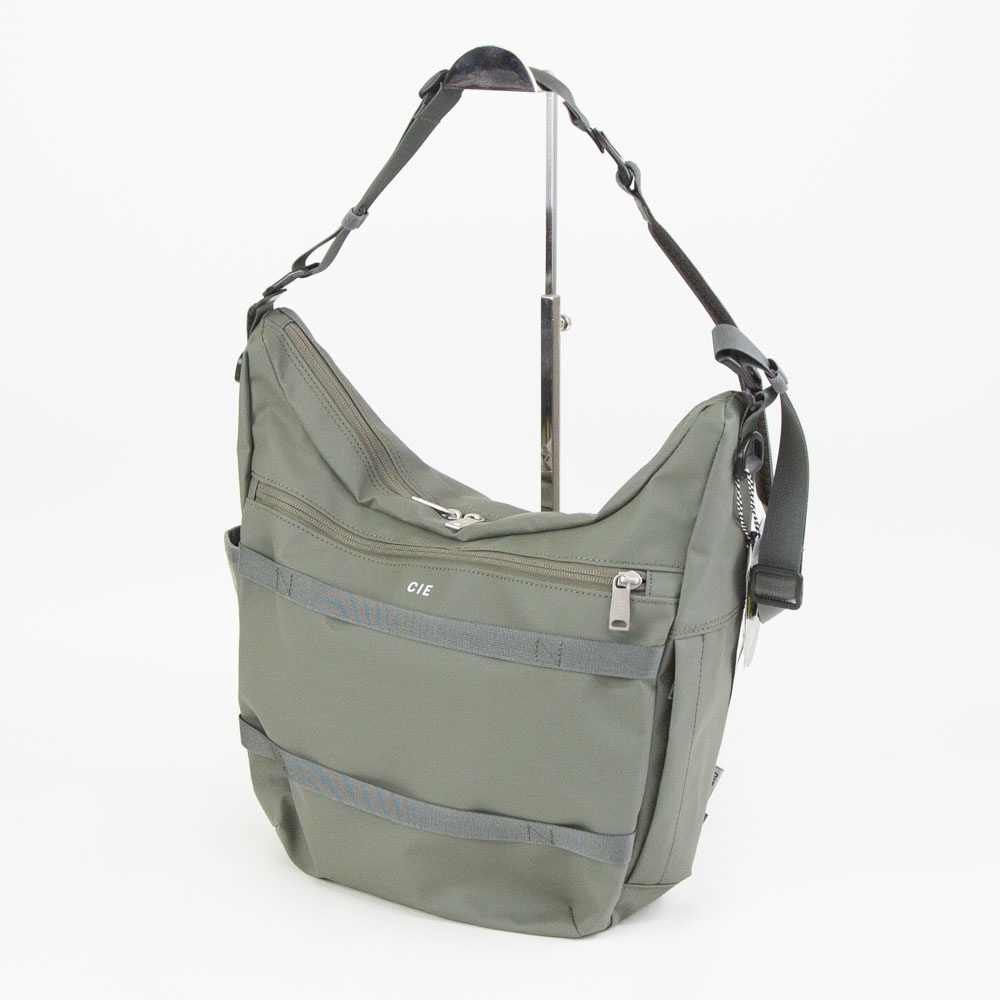 本体生地はINVISTA社に依頼し開発したオリジナルマテリアルCORDURA® POLYCARBONATEを使用しています。ベース生地には摩擦、引裂きに強い耐久性に優れたCORDURA®305Dポリエステルオックスの表面に通常のPUコーティングに比べ耐摩擦性、耐摩耗性、耐光性、加水分解による劣化スピードが遅い耐久性に優れたポリカーボネイト加工を施した防水性、撥水性に優れた素材を使用しております。カラーはCIE別注色の炭がかった独特の「BLACK」とヨーロッパのミリタリーウェアに見られるセージグリーンにインスパイアされた「OLIVE」、はポーランド軍のミリタリーネイビーに触発された彩度の低いネイビー色「GRAY NAVY」、アメリカ海軍で採用されているオールウェザーコートの淡いグレイをモチーフにした「 LIGHT GRAY 」の4色展開となっております。 またテープディティールは高密度で織られた畝が特徴的なミリタリーライクなトジ織のナイロンテープを使用しております。CORDURA別注織ネームはCIEオリジナルのオリーブカラー、CIEオリジナルネームは昔ながらのシャトル織機で織られたバックサテンのネームとなっております。ZIPにはCIEオリジナル亜鉛ダイキャストのYKK製引手を使用しております。