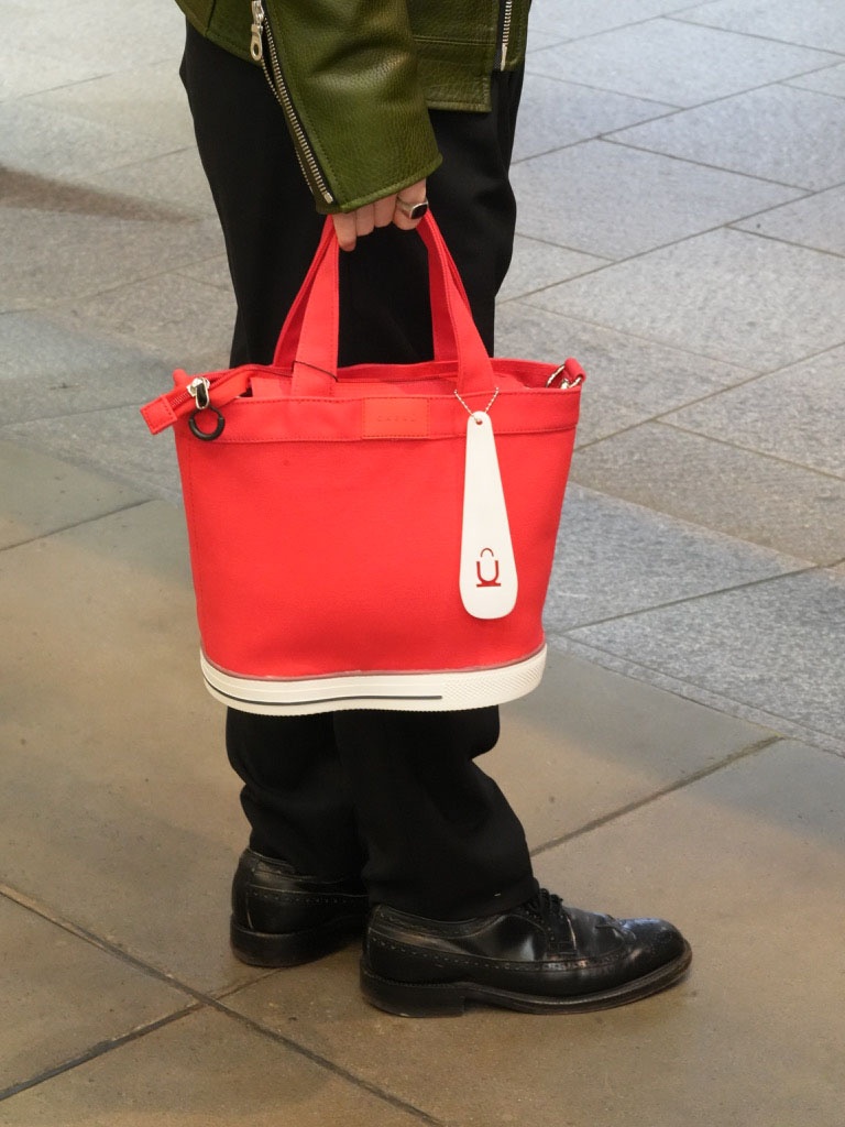 上質なコットンの帆布素材と、トリコロールのライン入りゴムソールを用いたデザインです。