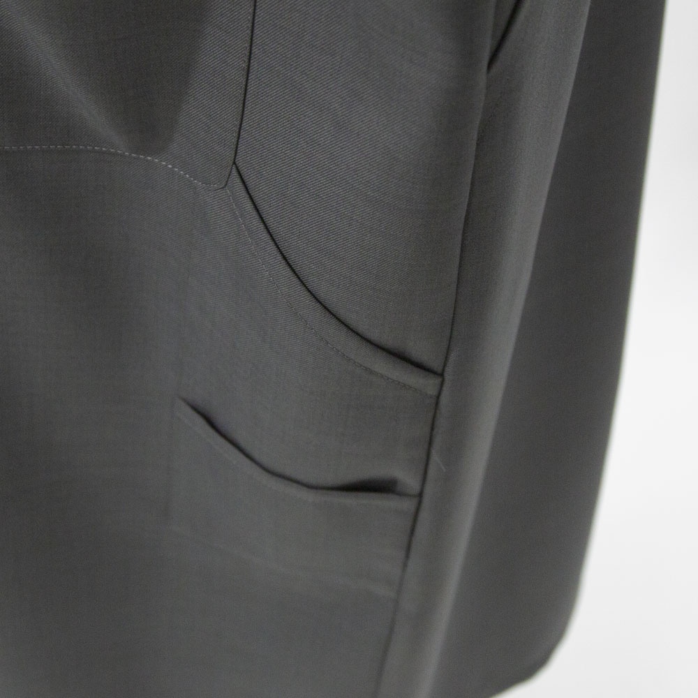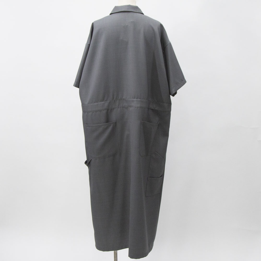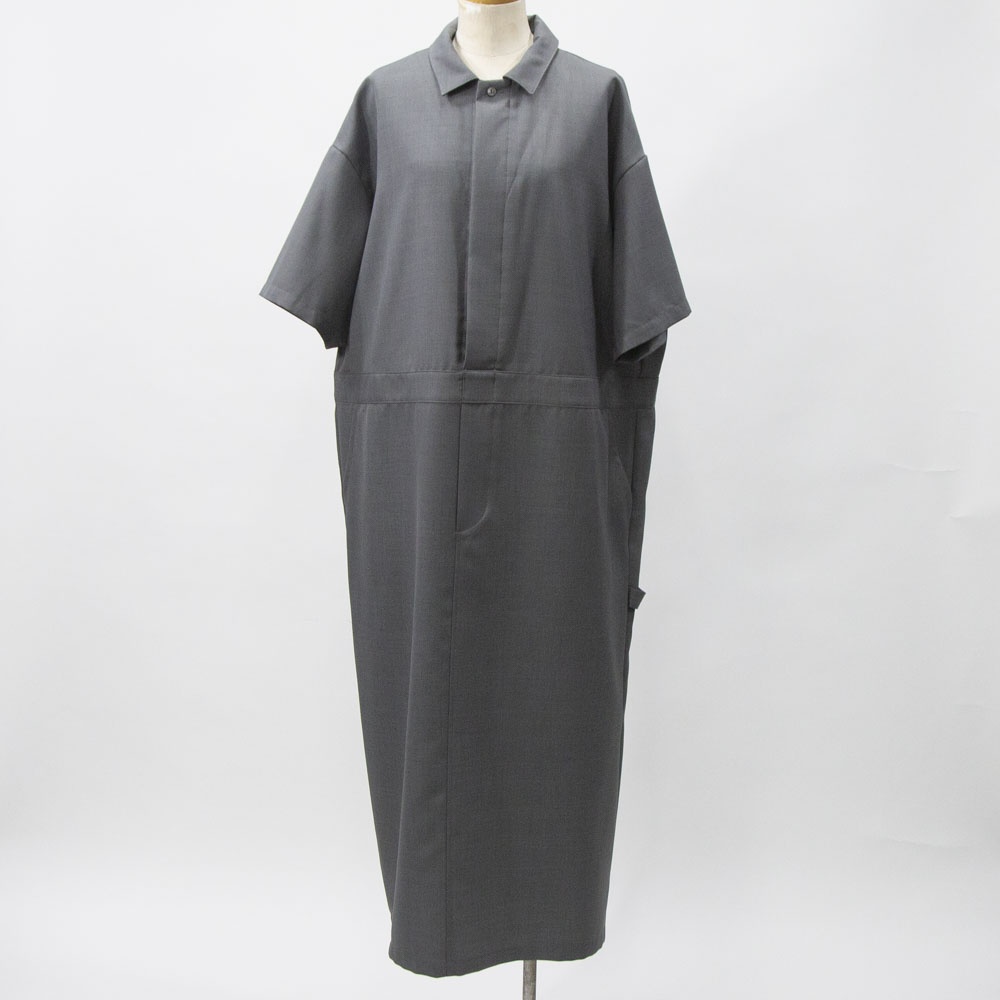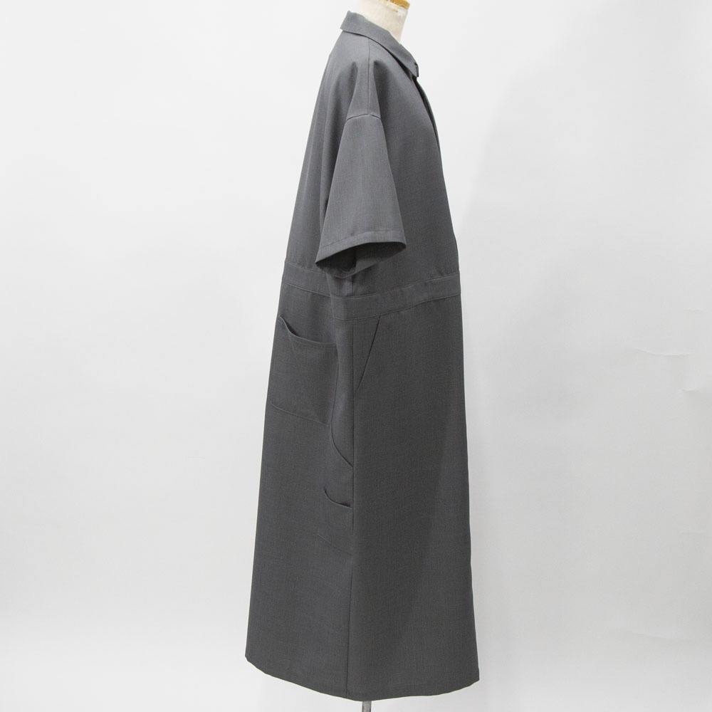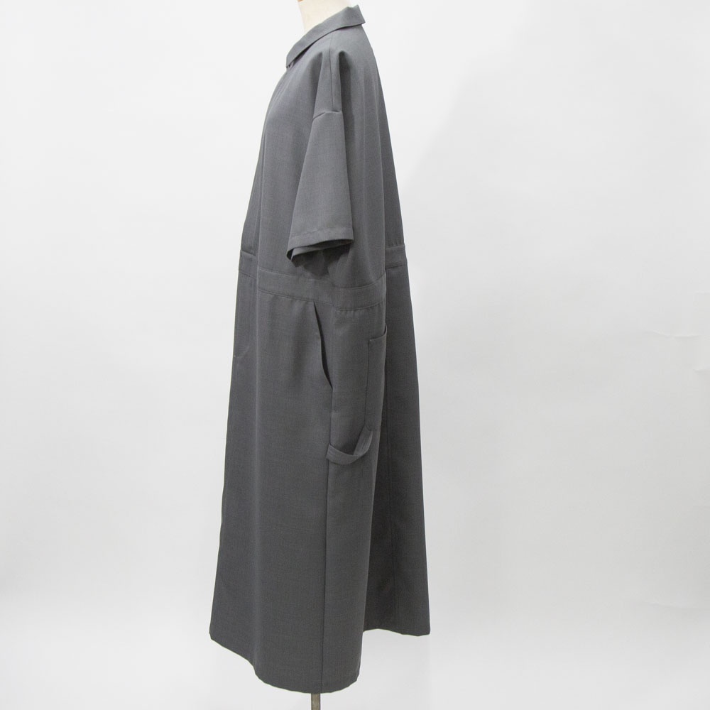 2024ss人気だったペインターライクワンピースが新色ライトグレーが追加されて再登場。サラッとした生地感は上品で、今時期はレイヤードスタイル、夏場は一枚でと長く愛用していただけるデザイン。シワになりにくいのが特徴でボックスラインがきれいに表現された1枚です。レギュラーカラーの襟を開いてラフにワイルドに着こなしても素敵です。胸下までのフロントボタンの開きを開放的にできるので着脱がしやすいのもポイントです。