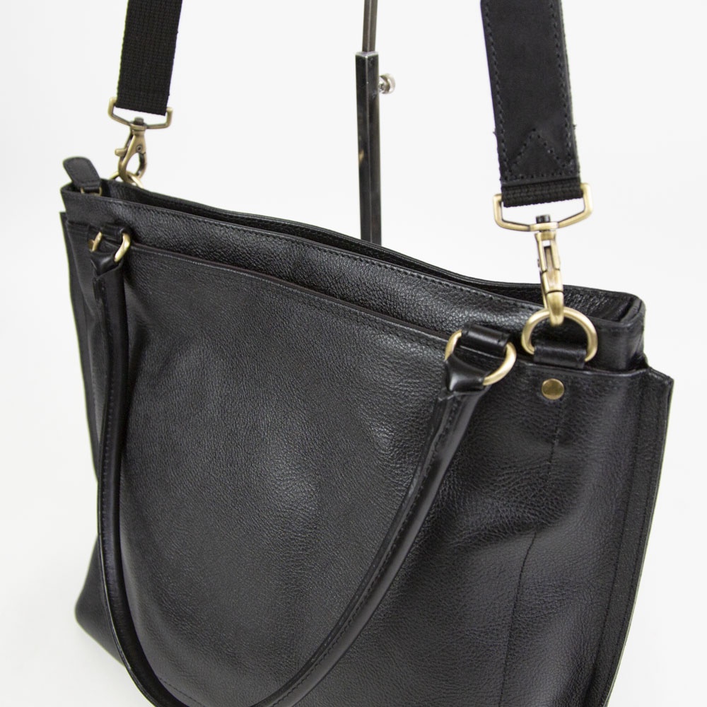 シーンを問わず使えるようにシンプルなデザインに仕立てられたレザー(牛革)トート。