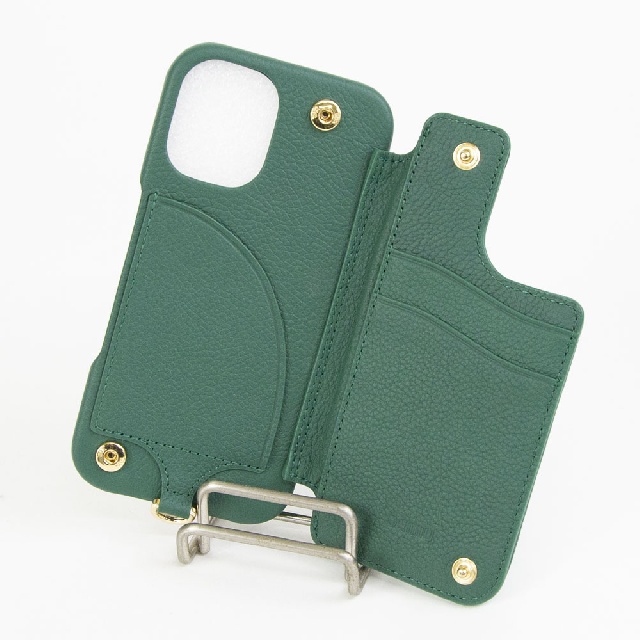 右扉の内側に2段のカードスリットと隠しポケット、左側に収納ポケットを備え、カードや小物を整理できます。