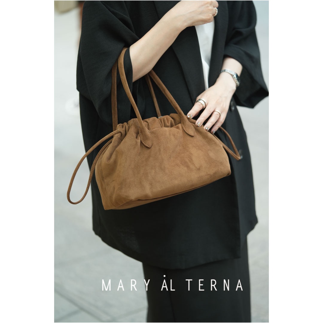2025年新作 “WRING" のミニハンドバッグ。巾着を閉めた時のドレープの表情を最大限に生かした変形デザインです。 抜群の軽さと、水分に強く色落ちがしづらい特徴を持つ、シーズンレスな万能素材のウルトラスエード。 巾着で 開閉する仕様で 、内側にはポケットが 1つあり小物も収納しやすい。