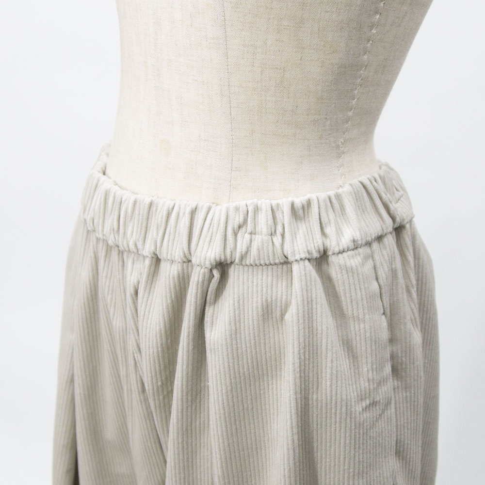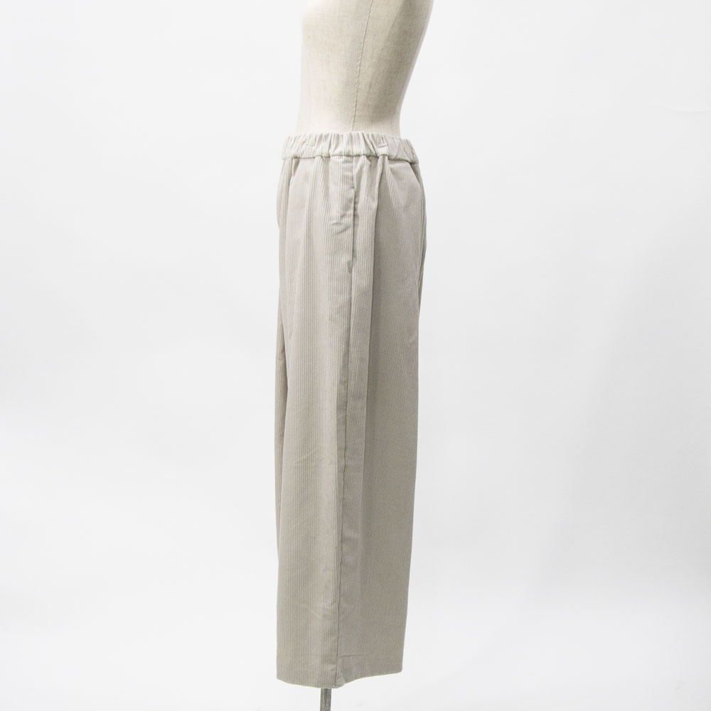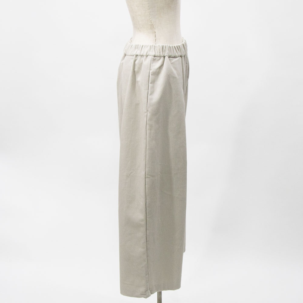 ハイウエストで太い綾が特徴の8ウェールコーデュロイを使用したコーデュロイワイドパンツです。昨年とても人気のあったアイテムが再登場。mizuiro indの人気のシルエットで温かみのあるボトムアイテムです。ウエストはリラックス感のあるゴム使用。小柄な方にもオススメです◎