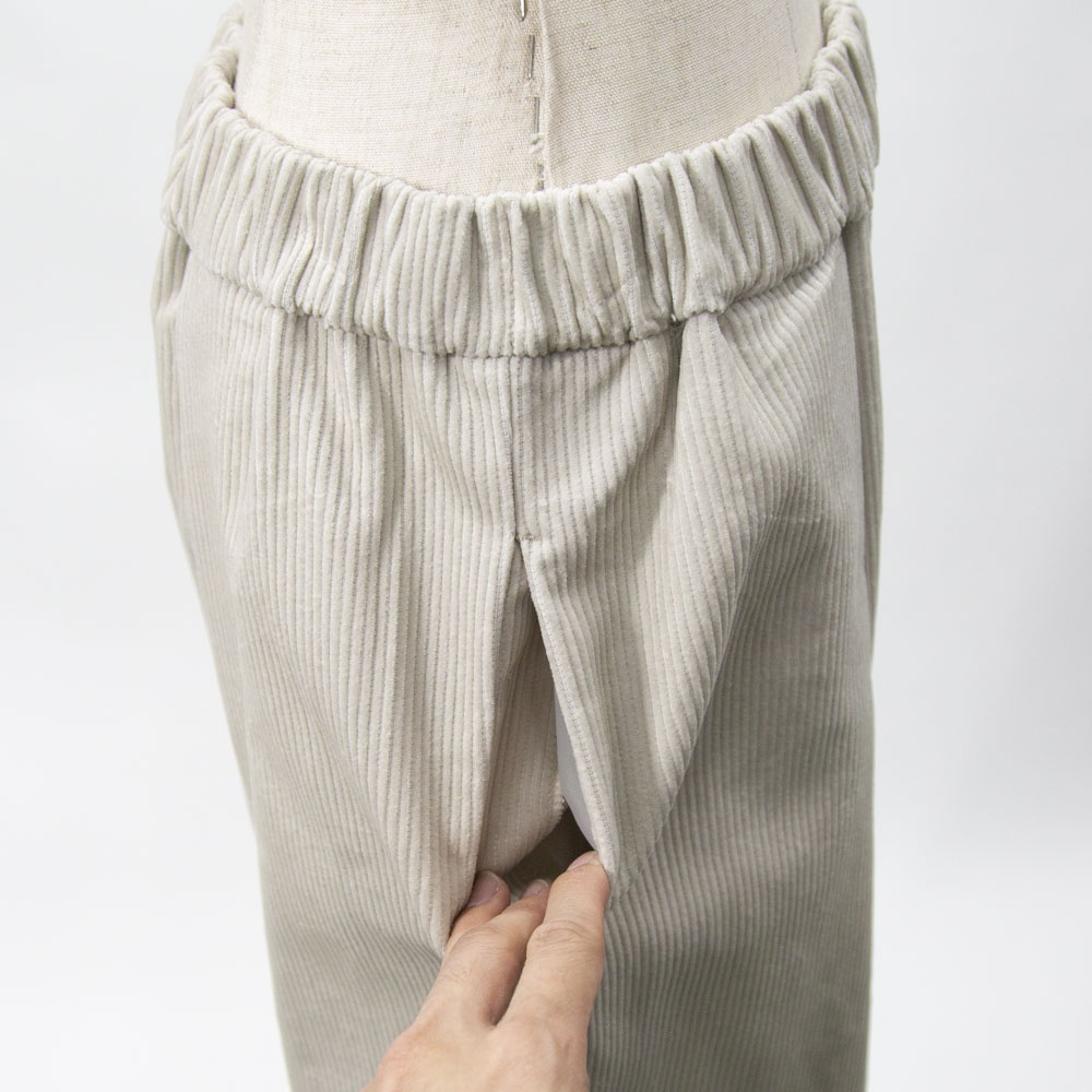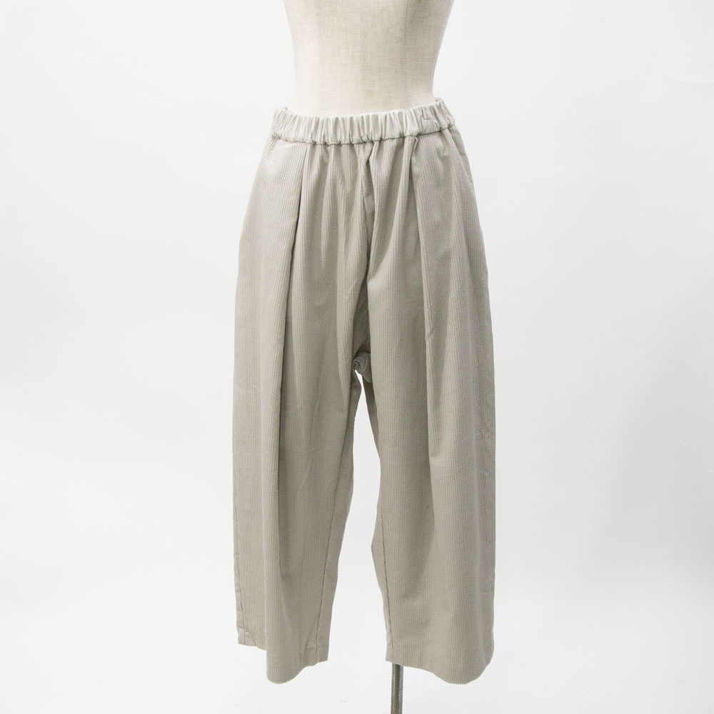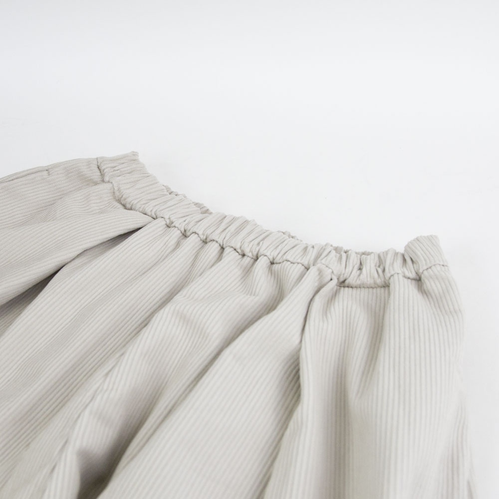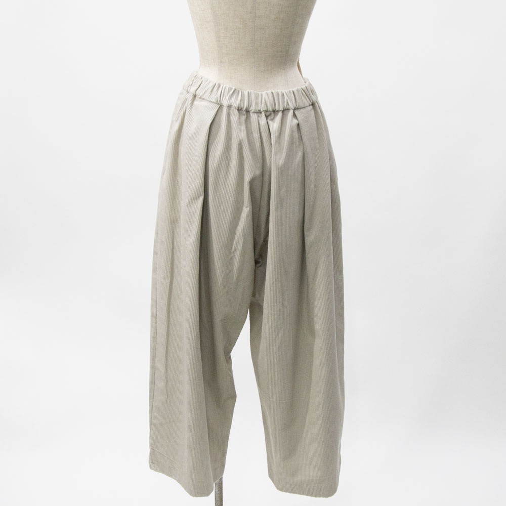 ハイウエストで太い綾が特徴の8ウェールコーデュロイを使用したコーデュロイワイドパンツです。昨年とても人気のあったアイテムが再登場。mizuiro indの人気のシルエットで温かみのあるボトムアイテムです。ウエストはリラックス感のあるゴム使用。小柄な方にもオススメです◎