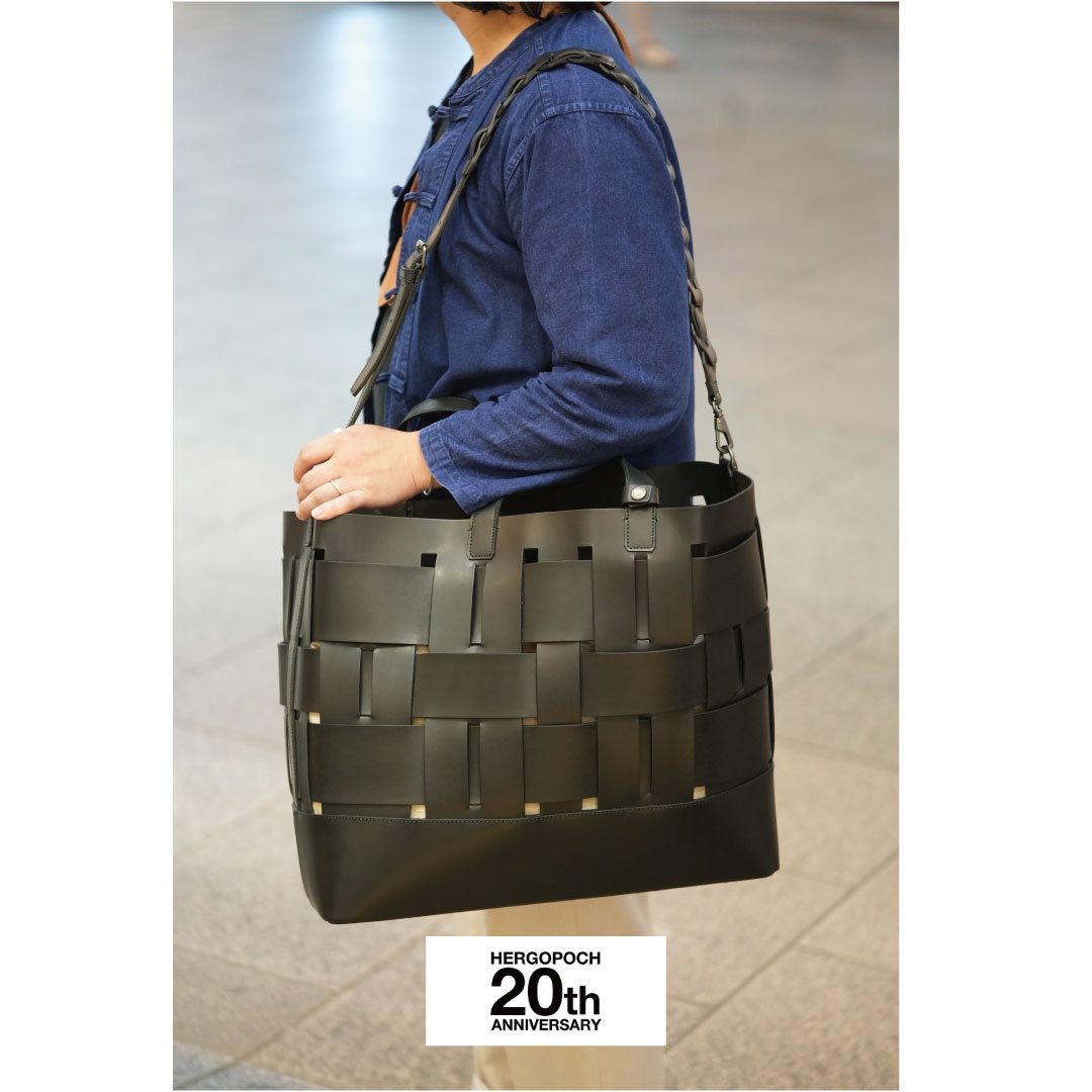 雑誌LEONとのコラボレーションモデル。大胆なラージサイズと圧倒的な存在感を放つ編み込みデザインが目を惹く、“LEONらしさ”が詰まったラグジュアリートートです。