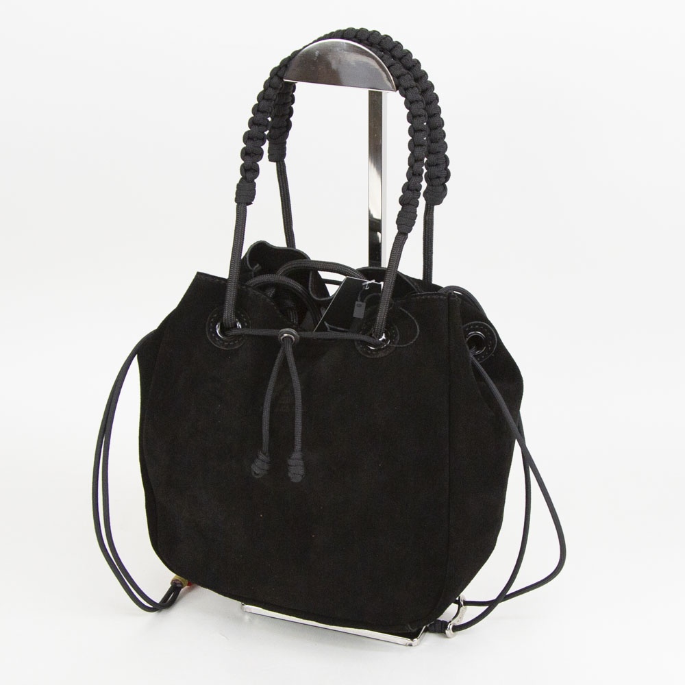 2025年秋冬よりスタートした新ブランドです。 一つずつ編まれたハンドルが印象的な巾着タイプのHIADA PRODUCTS新型コレクション。 上質なスエード素材は使う度に経年変化も楽しめます。 前胴部のドローコードでサイズを絞る事も可能 お財布携帯、小物類が充分収まり、別売りのストラップと併せると3WAYでお使い頂けます。