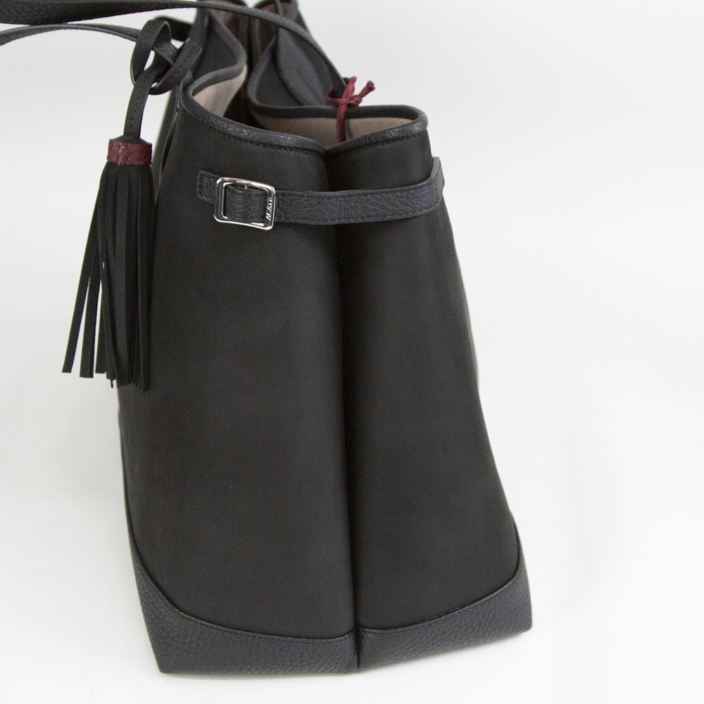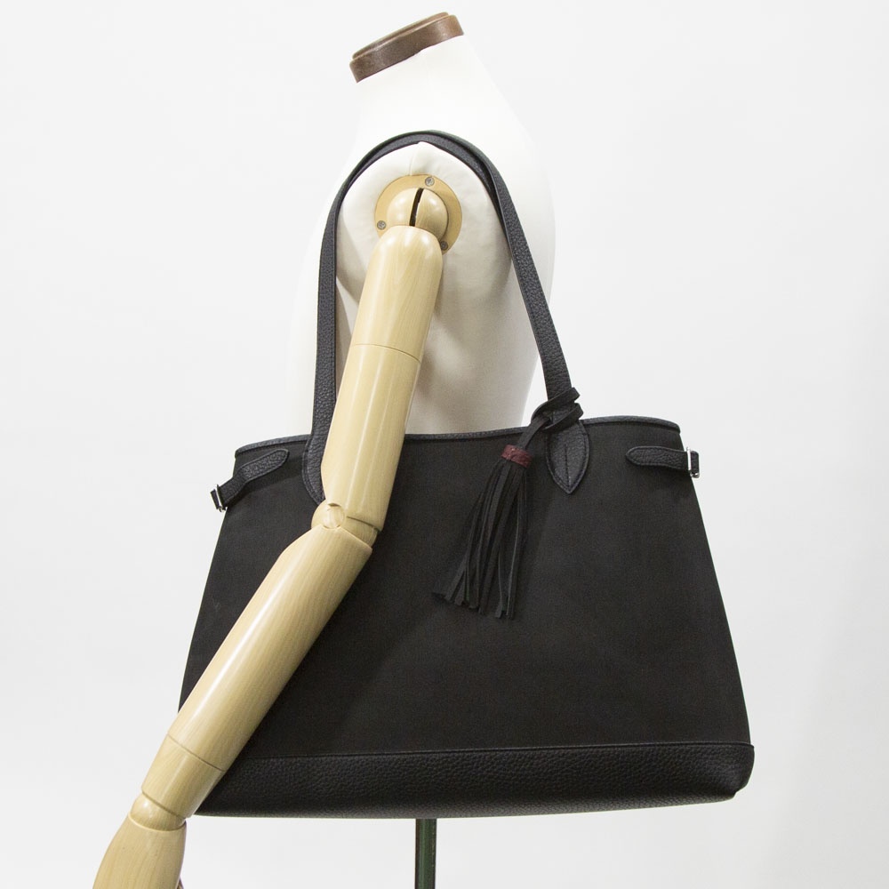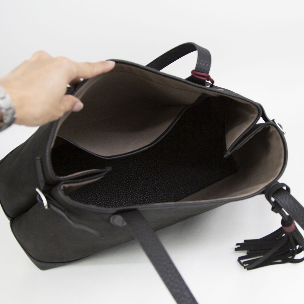 2025年秋冬新作 日常使いにちょうどいいトートバッグのサイズをライトに仕上げた「LODOS2」が、ボディをエイジングがしっかりと掛るヌバックに 底面にはシュリンクレザーを施した贅沢仕様のバッグが登場しました。 シンプルながらも上質でオンオフ問わない使用感も人気でありますが、更にオフシーンでの使用感の良さが際立つようになりました。 側面にストラップを付属することで、容量サイズが調整できます。 メインコンパートメントは1室でインナーポケットを配置することで、荷物の仕分けがスムーズです。