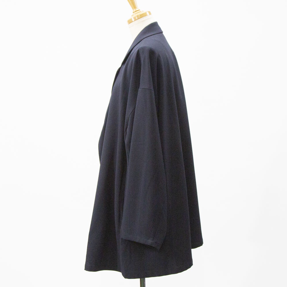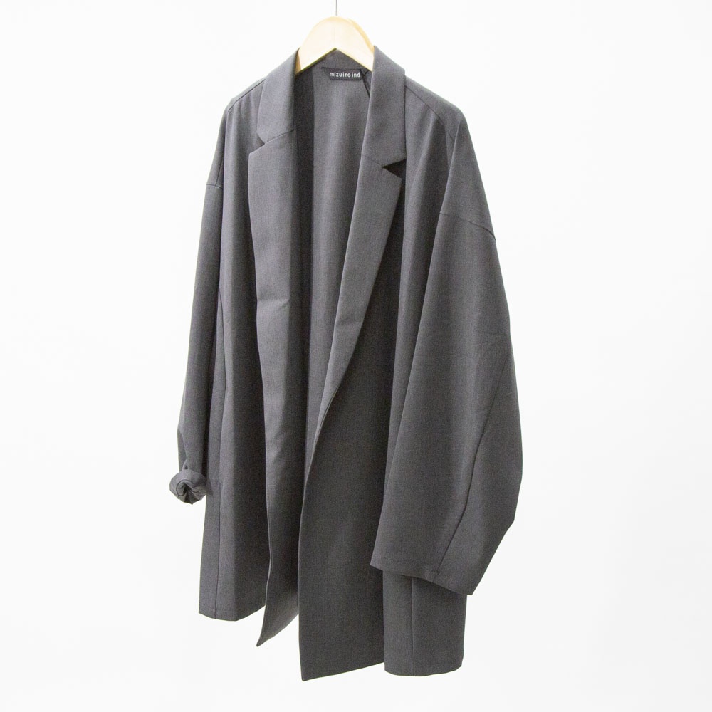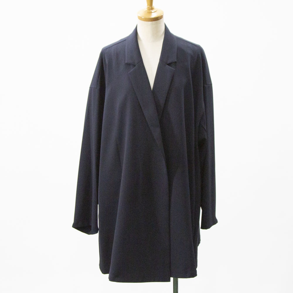ウールライクな質感のテーラードシャツジャケットです。春夏人気だった1-230052のアイテム素材バージョン。ボタンはなくすっきりとしたヒップの隠れる少し長めのデザインです。上品に広がりのあるフレアラインが特徴でしなやかに動きのあるシルエットでオケージョン対応も◎OK。
