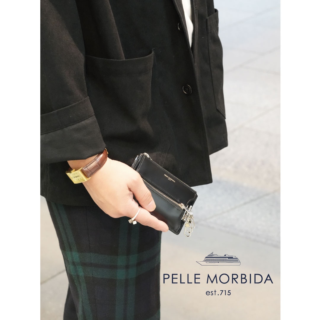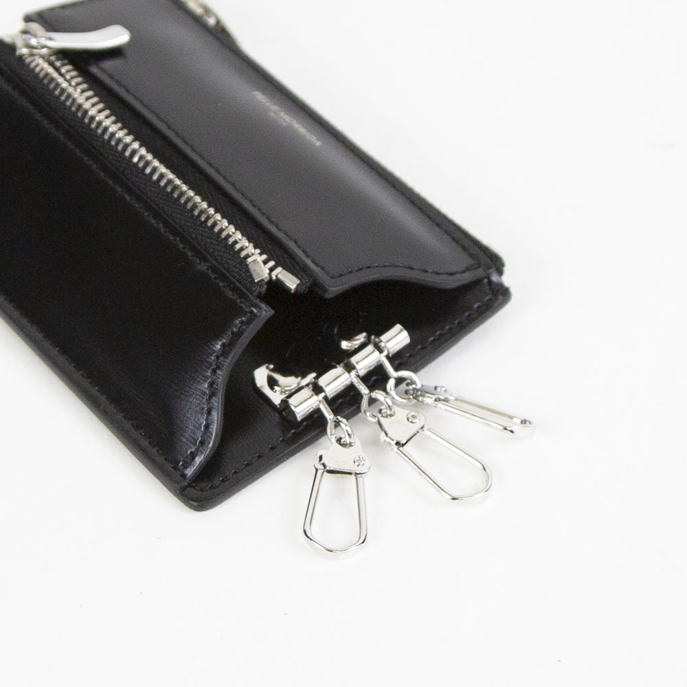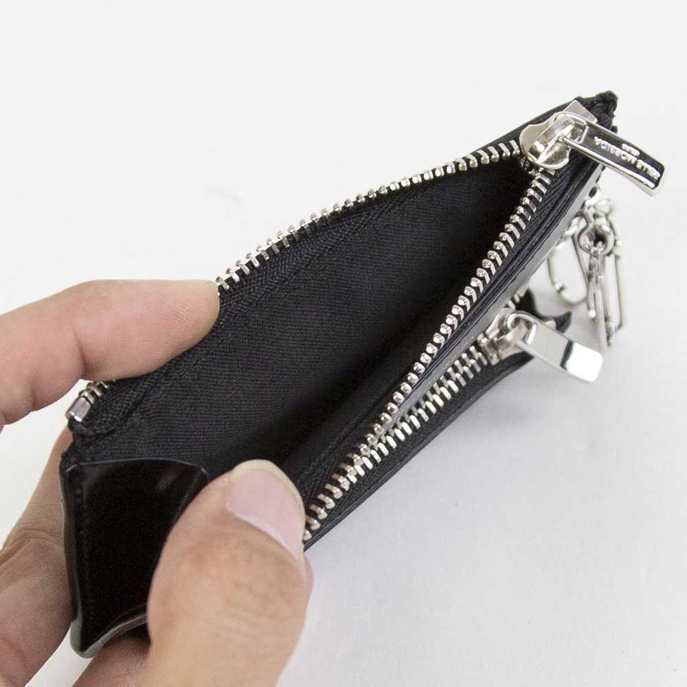 正面のファスナーデザインがアクセントの新型ミニウォレット。 小銭やカードが収納できるスペースに加え、鍵も取り付けられる機能を持ち合わせた新鮮なアイテムです。