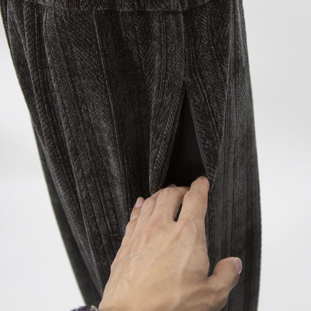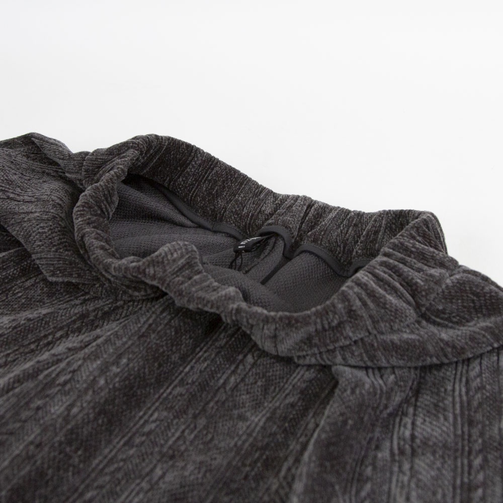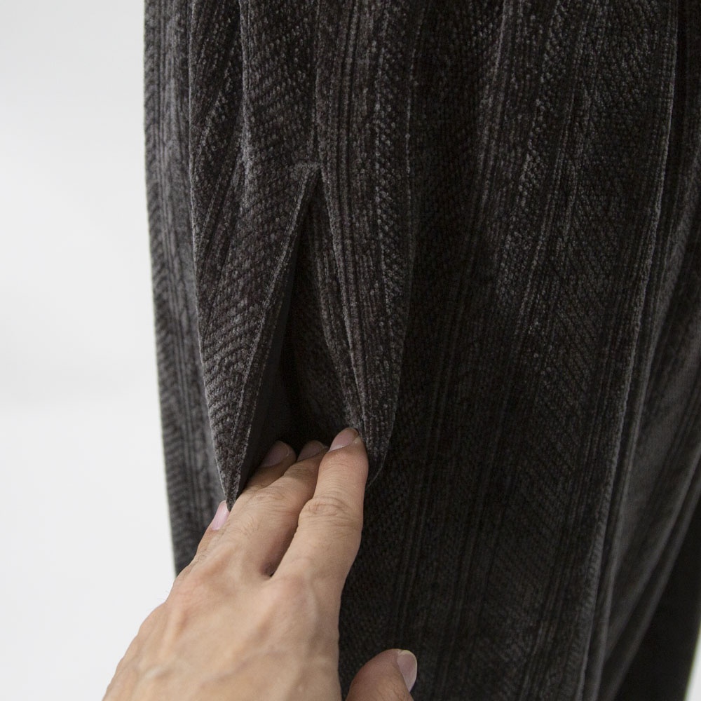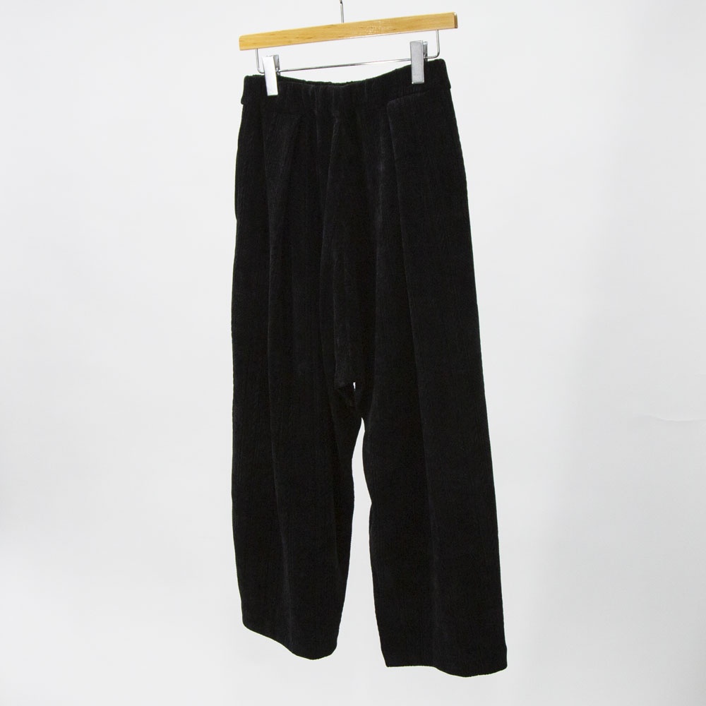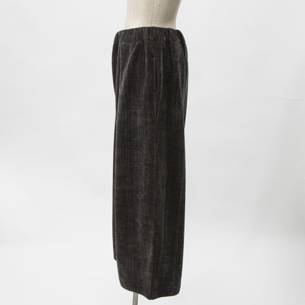着心地の良いベロア素材のベロアジャガードタックパンツです。アラン柄がシックでで上品な雰囲気。程よい光沢感がありモードなモード感たっぷりの1枚です。ウエストはリラックス感のあるゴム使用。長すぎない丈感なので小柄の方にも穿きやすい長さです。