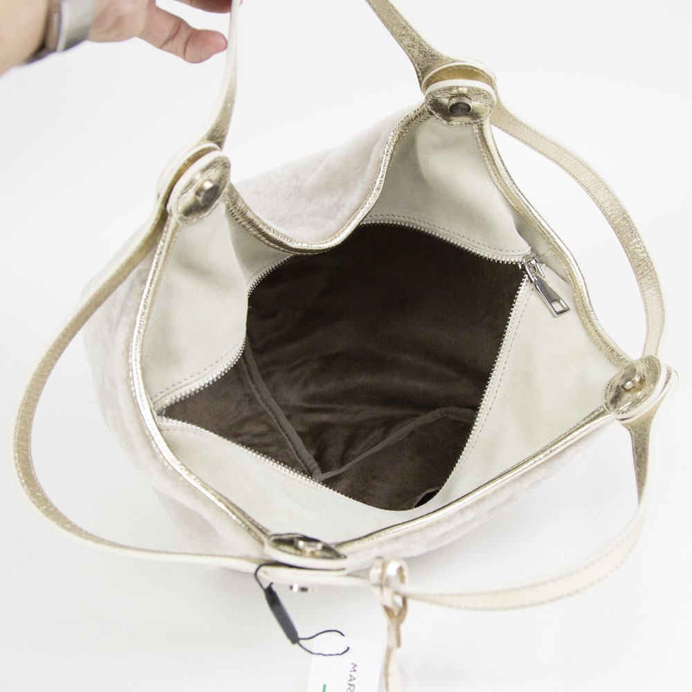 今季はベーシックなダブルハンドルに、ムートン素材を使った 2WAYバッグとなっています。大きさも大きすぎず、小さすぎないシンプルで癖のないハンドバッグタイプ。内装にはオープンポケットを 2箇所設置していて、小物の小分けに便利です。