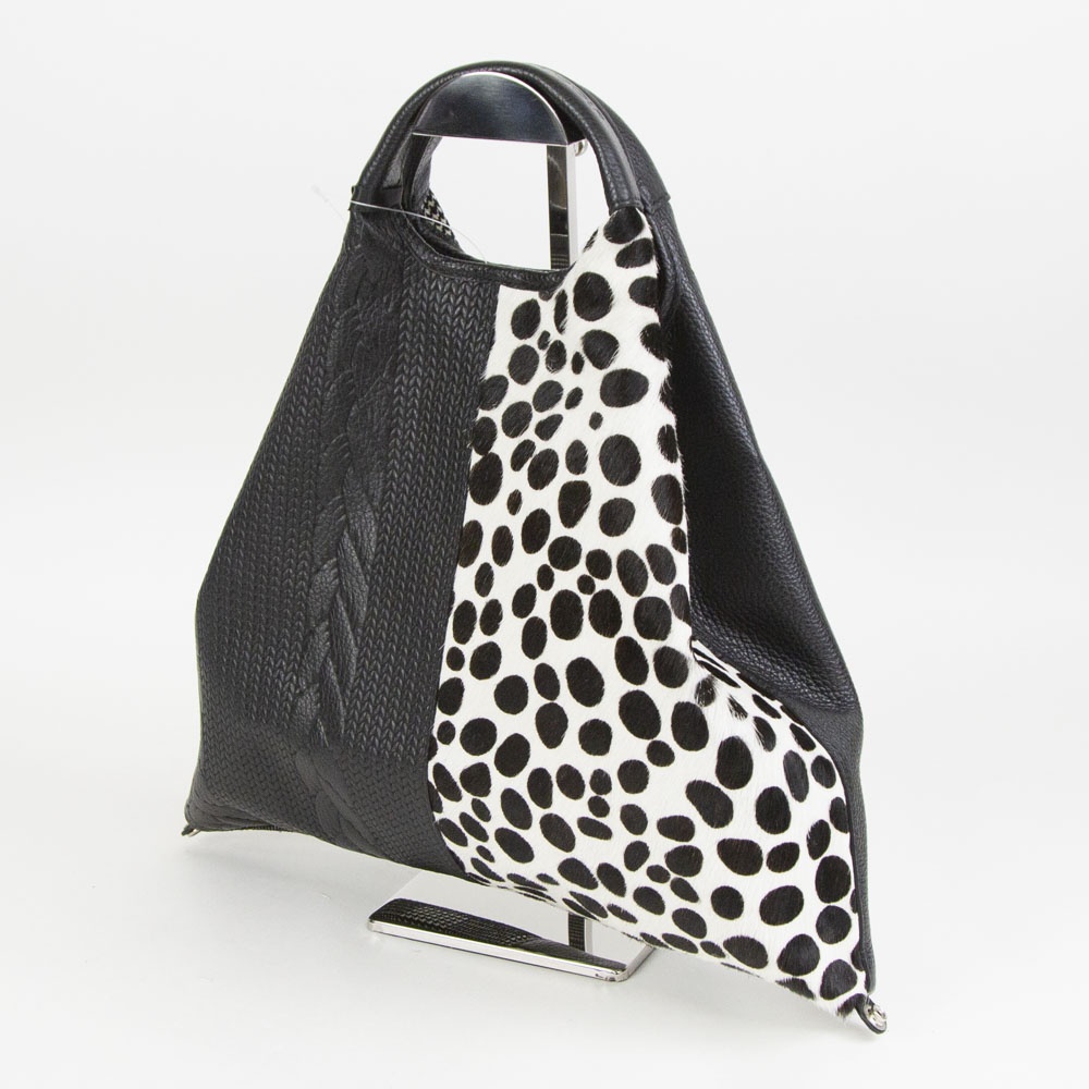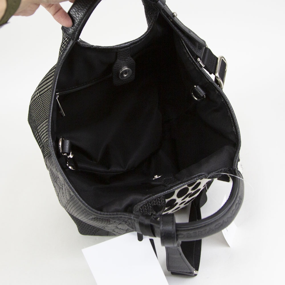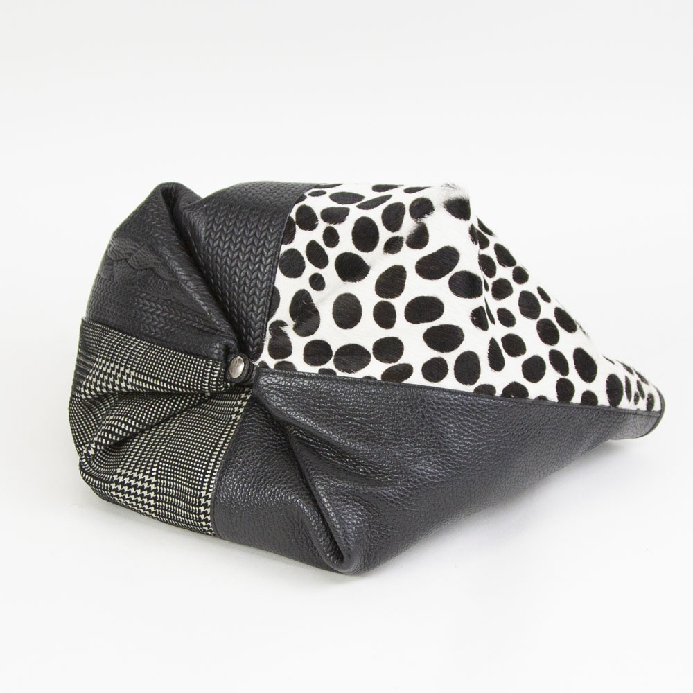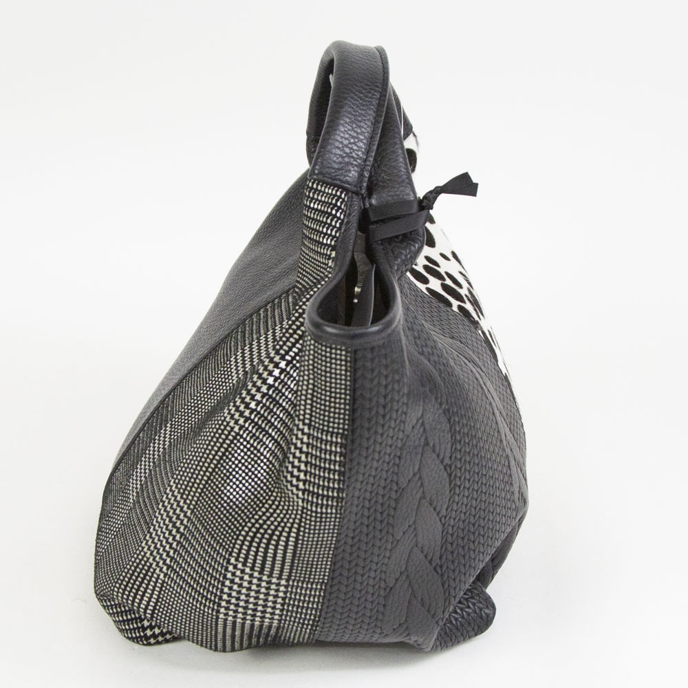 今回入荷した、ロベルタガンドルフィらしいレザーパッチワークで構築されたバッグ。レザーの異素材をミックスさせ、内装もシンプルな仕上がりに。