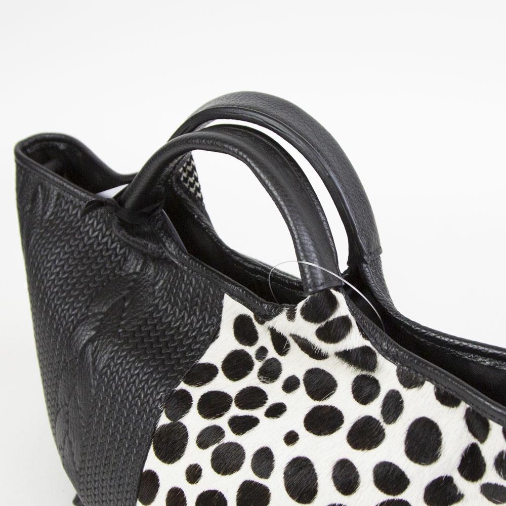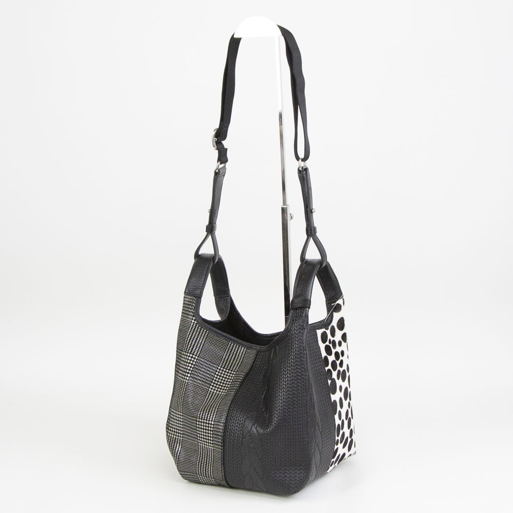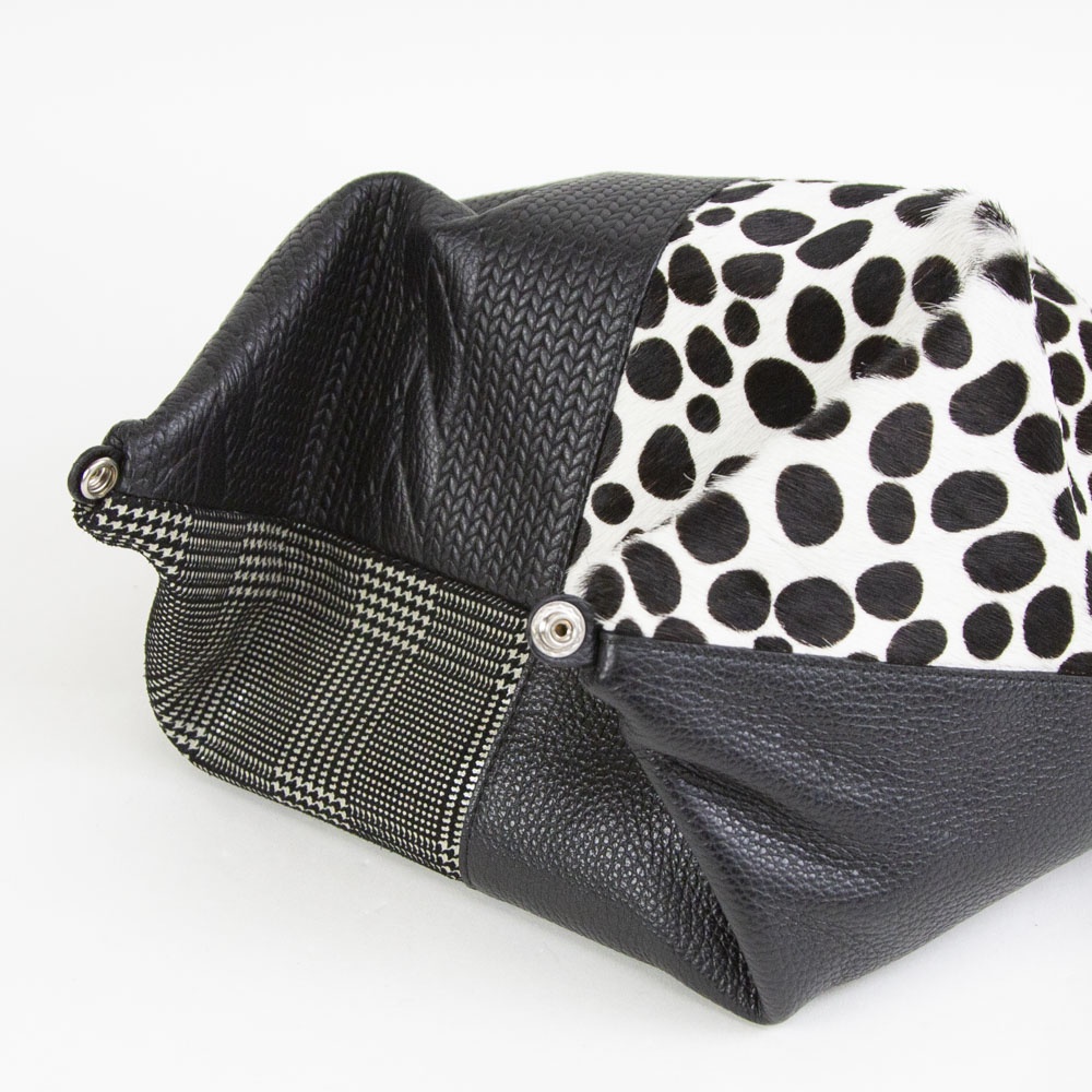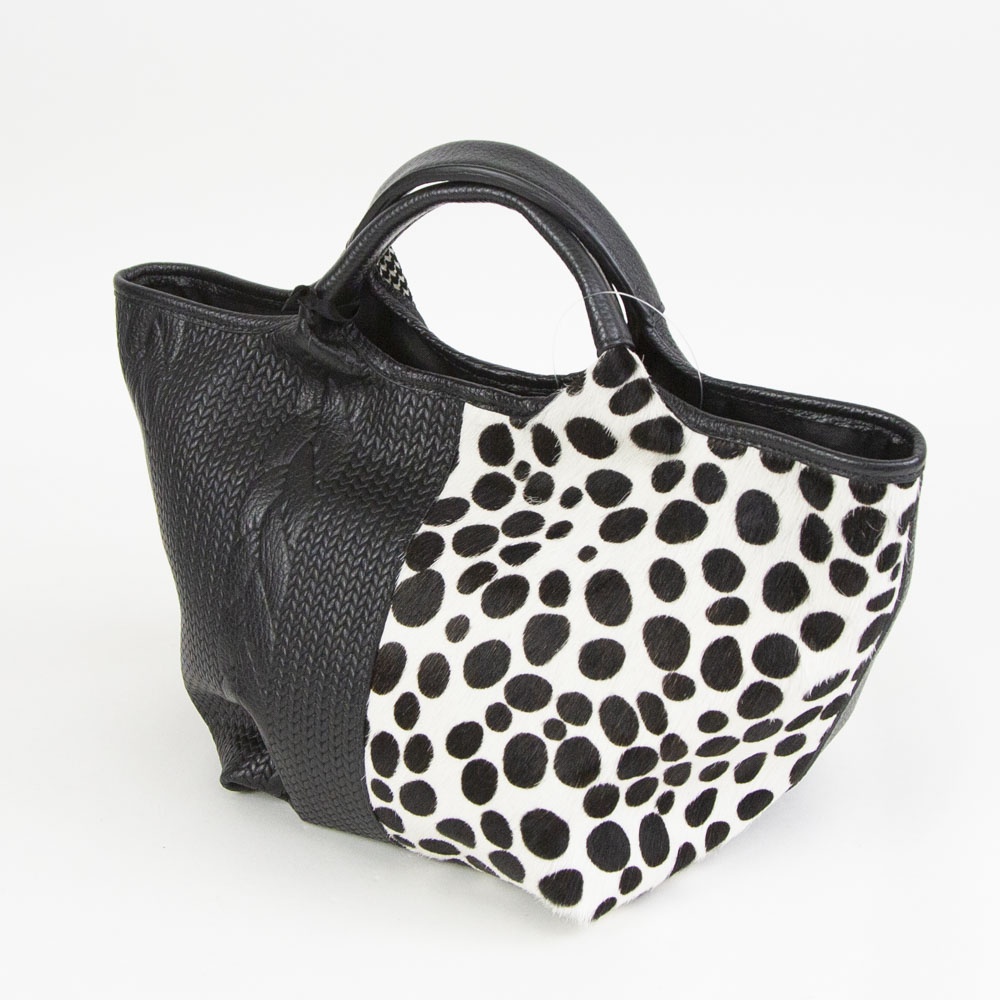 今回入荷した、ロベルタガンドルフィらしいレザーパッチワークで構築されたバッグ。レザーの異素材をミックスさせ、内装もシンプルな仕上がりに。