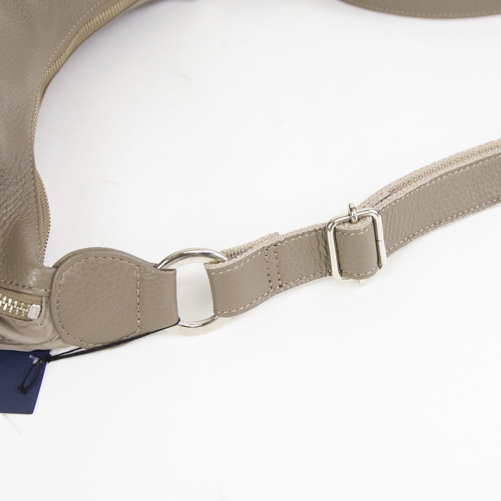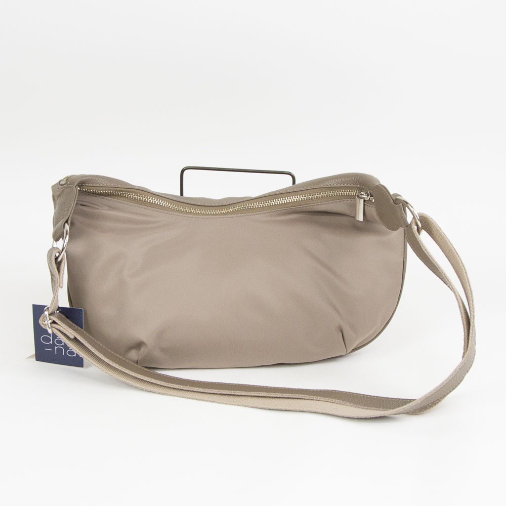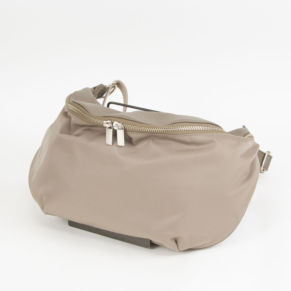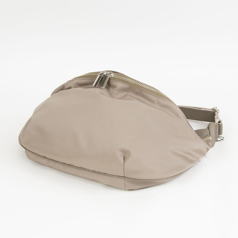 本体はポリエステル素材で仕上げ、他パーツはレザーを組み合わせたベーシックなボディバッグです