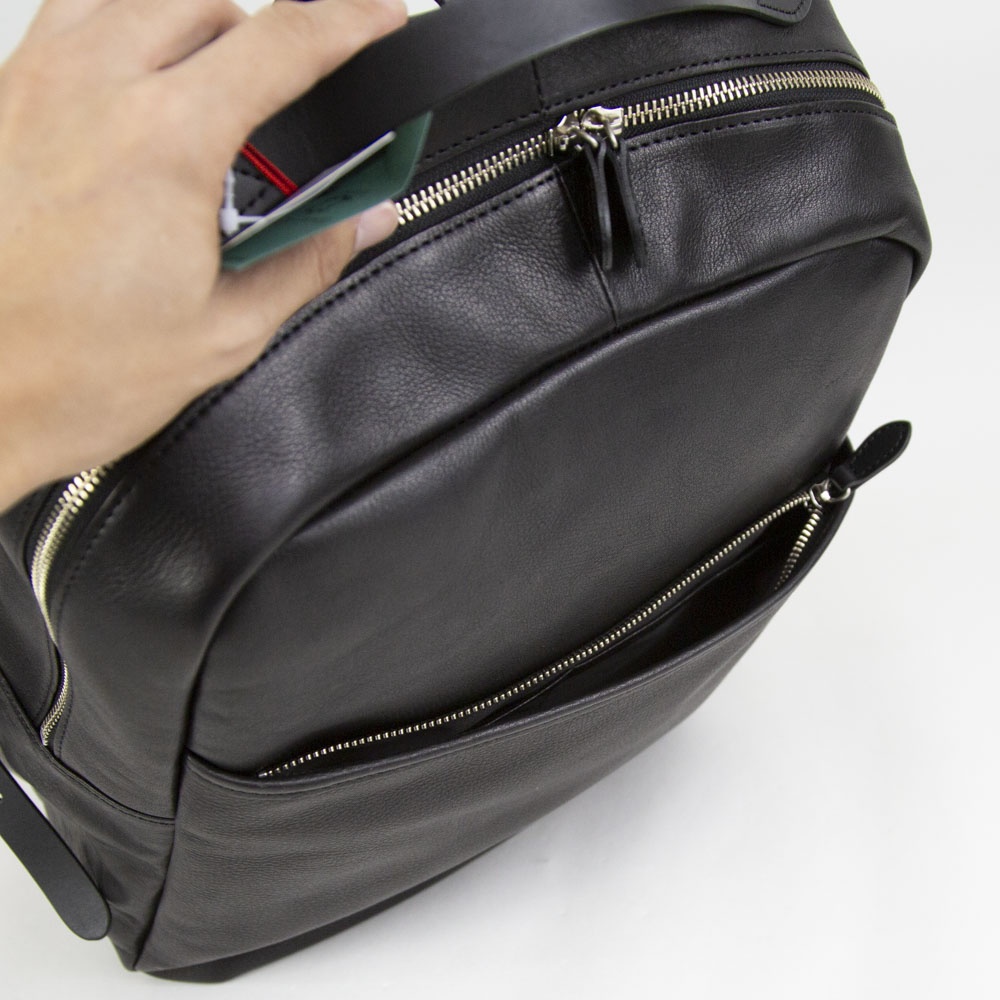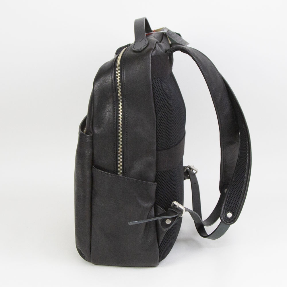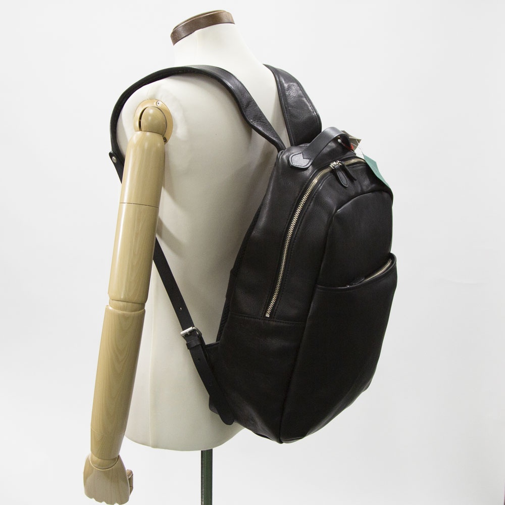 上質な革質を使いながらもコスパの良いバッグや財布等、の革小物を提案する日本のブランドNELD(ネルド)の新作レザーバックパックが入荷しました。油分を多く含んだNELD特有の牛革は、使い込む程に味わい深い変化、エイジングが楽しめるバッグとなっています。両サイドにはたまべりという、断面のコバを細いテープ状の革でつつむ技法をとっていますので、丈夫さのある仕上がりになっています。背面にはスーツケースのキャリーバーにキャリーオンができるバンドを設置。スーツケースとの併用も簡単になっています。内装、外装もとてもシンプルな作りでメインコンパートメントにはPCスペースを確保しているので、安心して収納ができる様になっています。