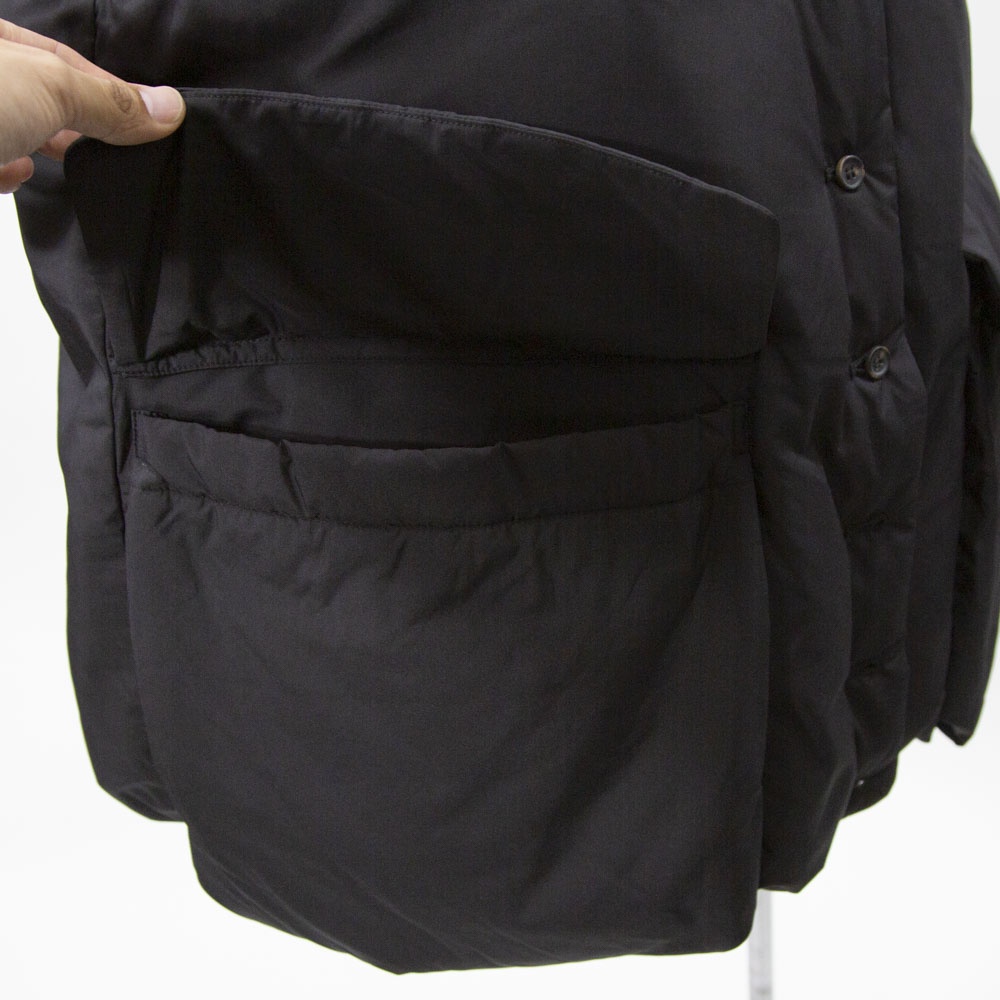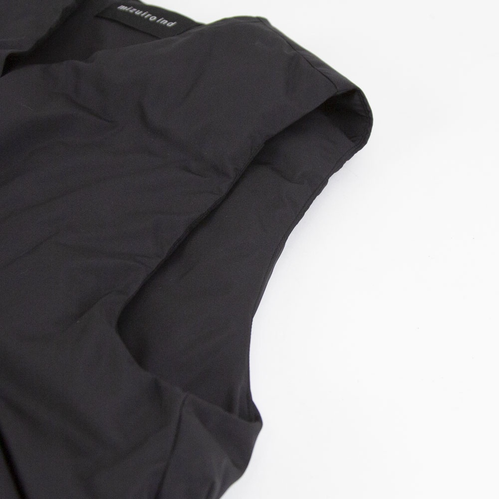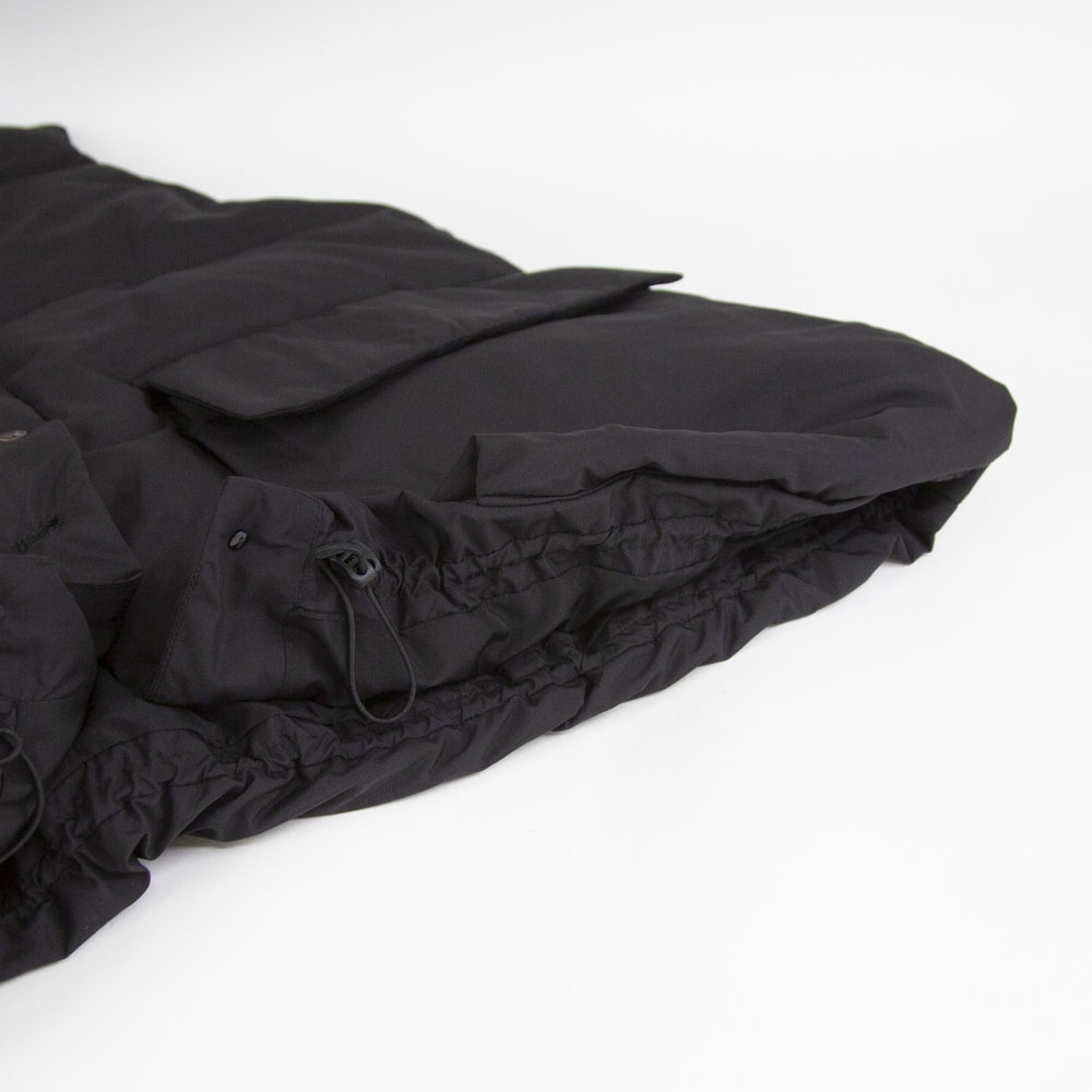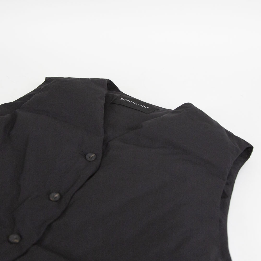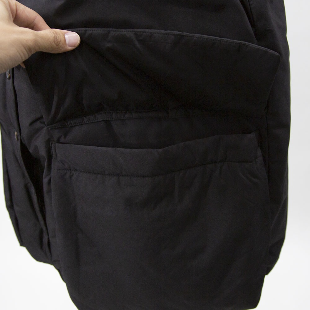 大きなポケットが特徴のダウンベストです。フロントポケットとは別にサイドポケットもあるこだわりのデザイン。浅めのVネックからフロントボタン使用になっており裾にかけボリューム感のあるデザイン。裾のドロストコードを絞ると立体的なシルエットに。今期オススメのアイテムです。