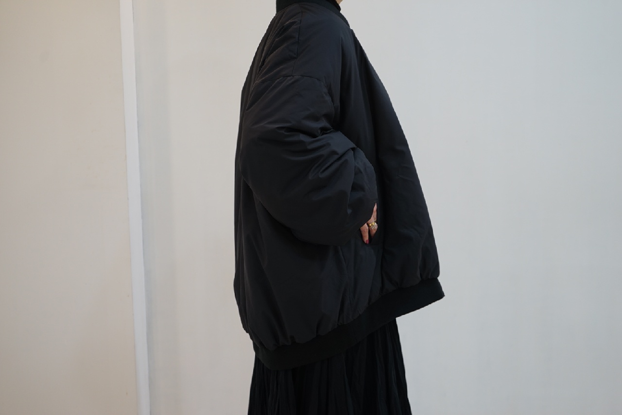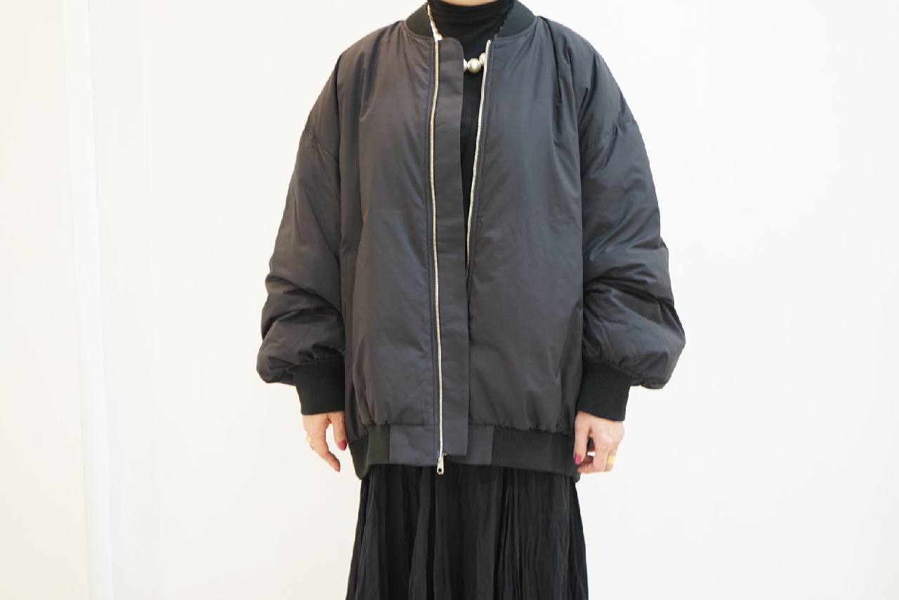 mizuiro ind人気のアウターが今季も再入荷。ビッグシルエットでメンズライクに着用できるワイドジップダウンブルゾン。裾と袖のリブがしっかりめの仕様でファスナーはWジッパー。ヒップの隠れる丈感で前後差があり丸みのあるバックシルエット。ワイドなサイズ感なので中にも着こめるのもポイント。とにかく軽く気軽に着用できるできるオススメのアウターです。