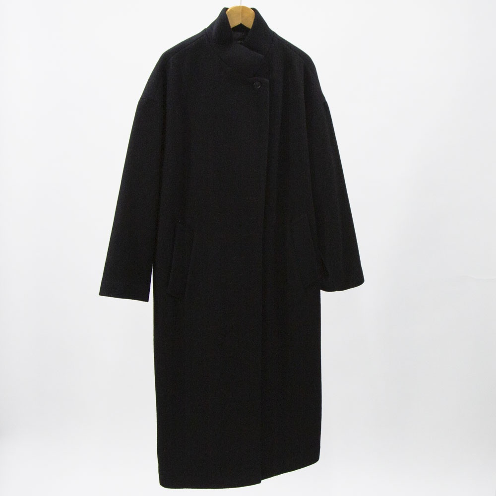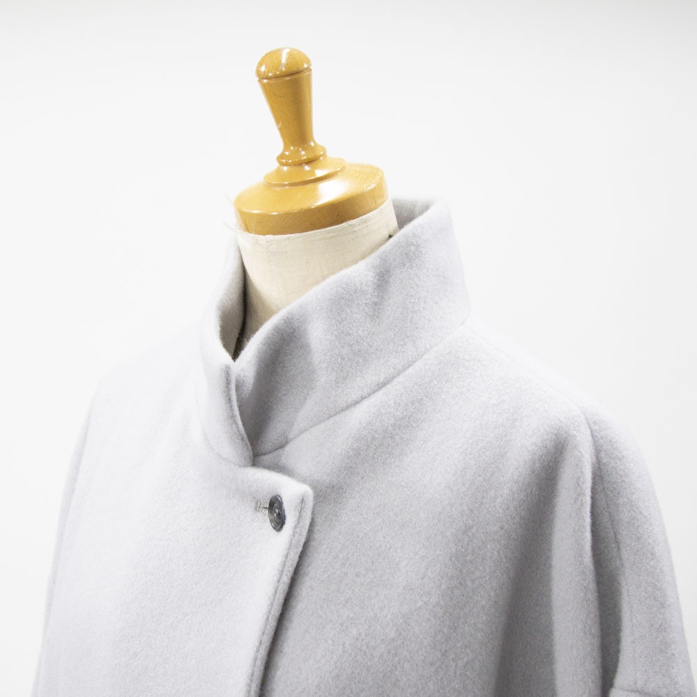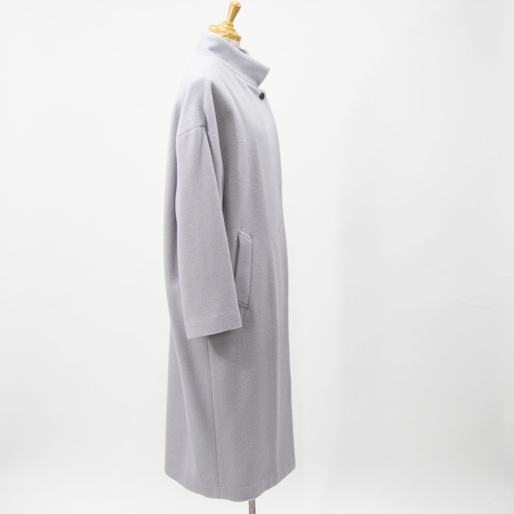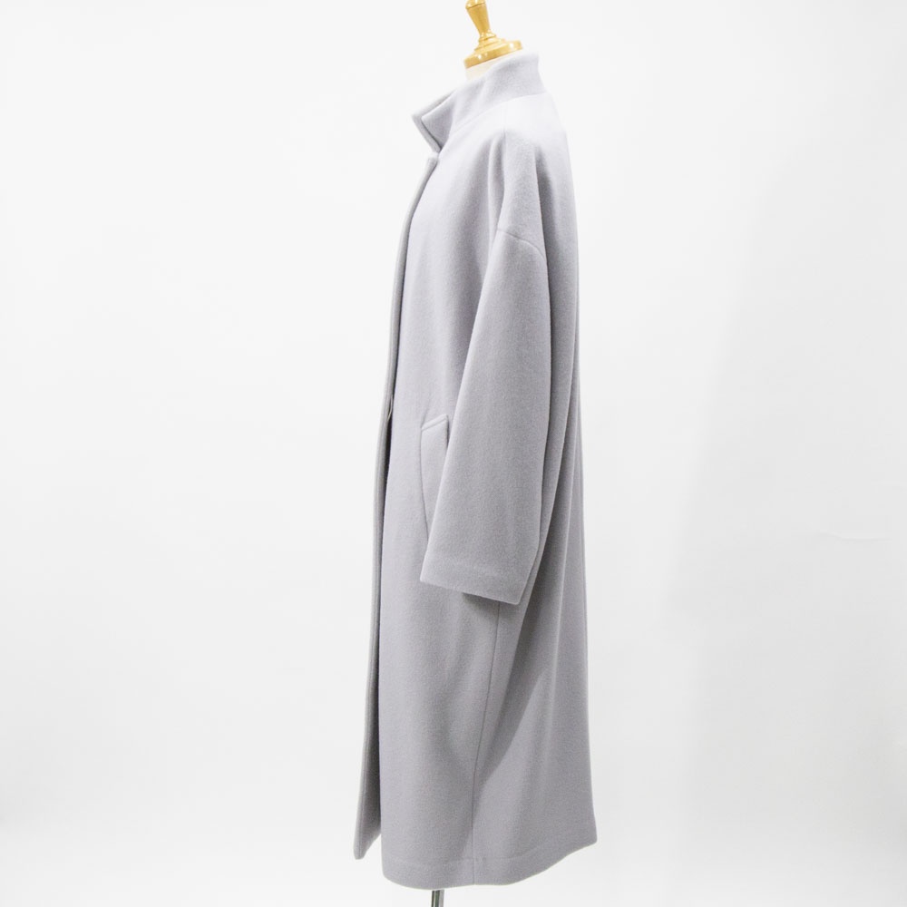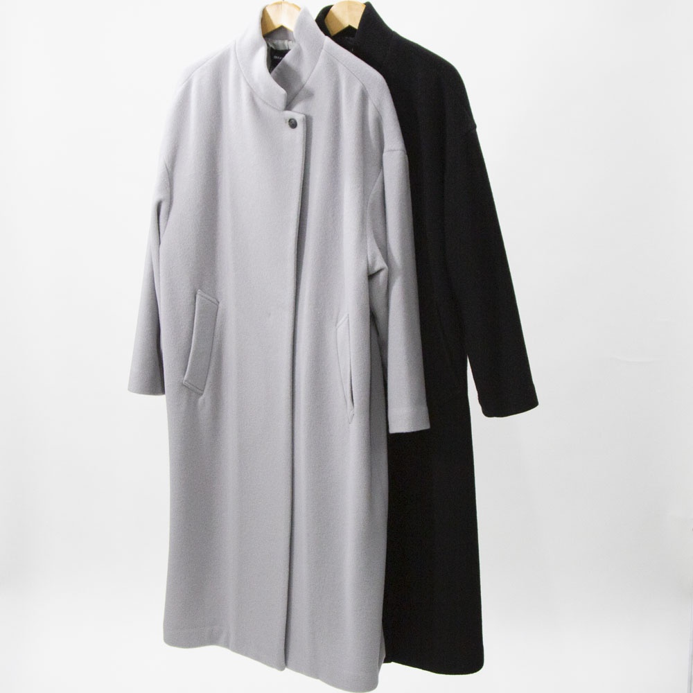 mizuiro ind人気のウールブレンドスタンドカラーコートが再登場。首を温かく覆ってくれるデザインでスタンダードなシルエットが魅力的なコートです。隠れボタンのデザインなのでワントーンのすっきりとしたデザインが大人な1枚です。
