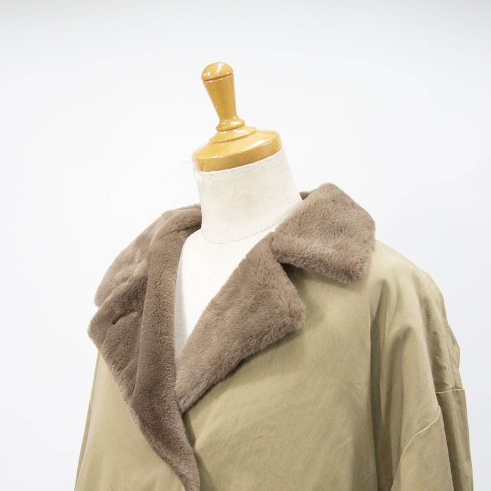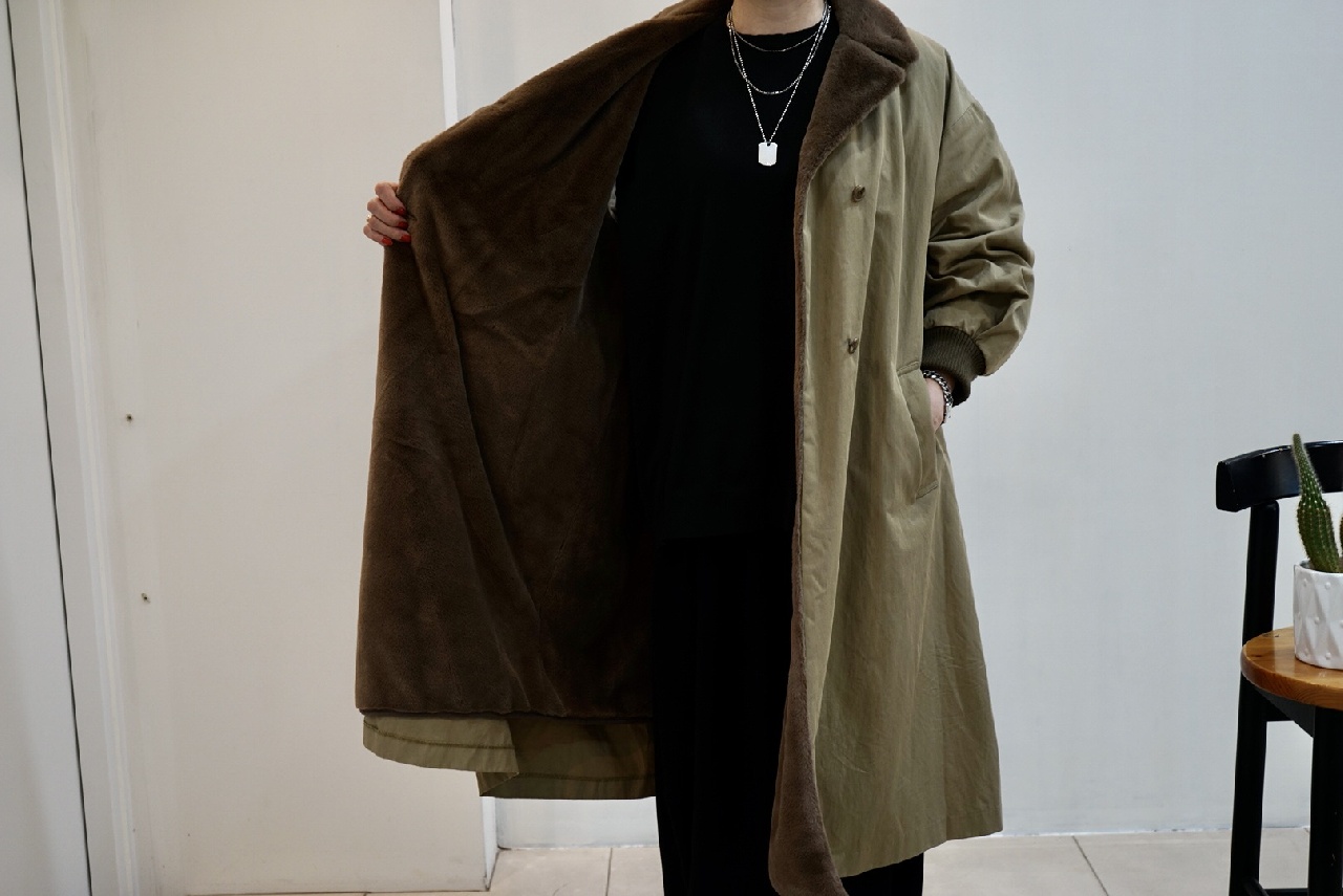 mizuiro indの人気型中ボアの暖かなデザインが特徴のバックボアコートが再登場。長く愛され今季もオススメの1枚となっています。毛足の短いなめらかなボアと風通しのないハリのある表面生地との相性抜群で魅力的なアウターです。袖口も風通しを考えられたリブ袖。小柄な方でもロング丈で素敵に着ていただけるサイズ感に仕上がっています。軽さもあり袖通しのよいボアの着心地の良さを体感していただける1枚です。