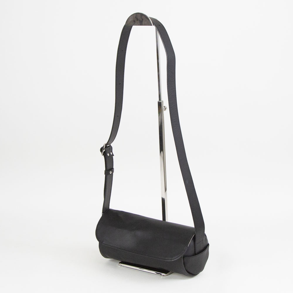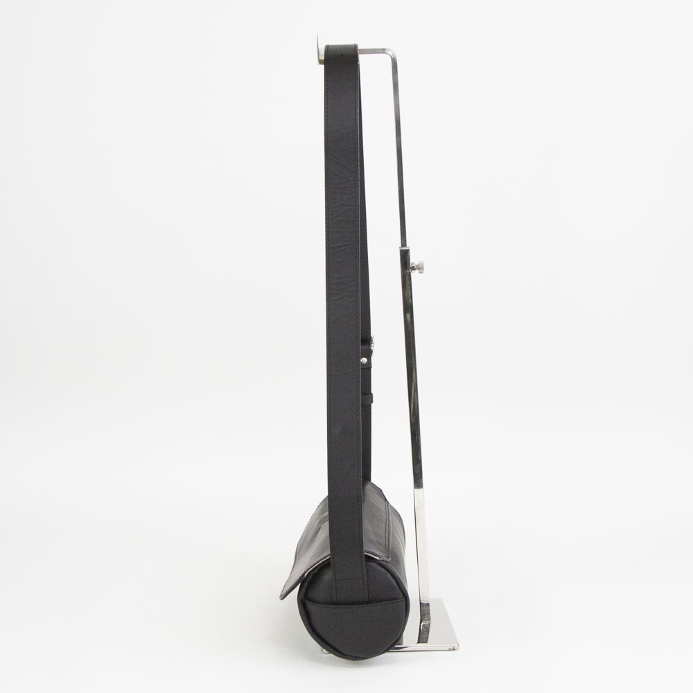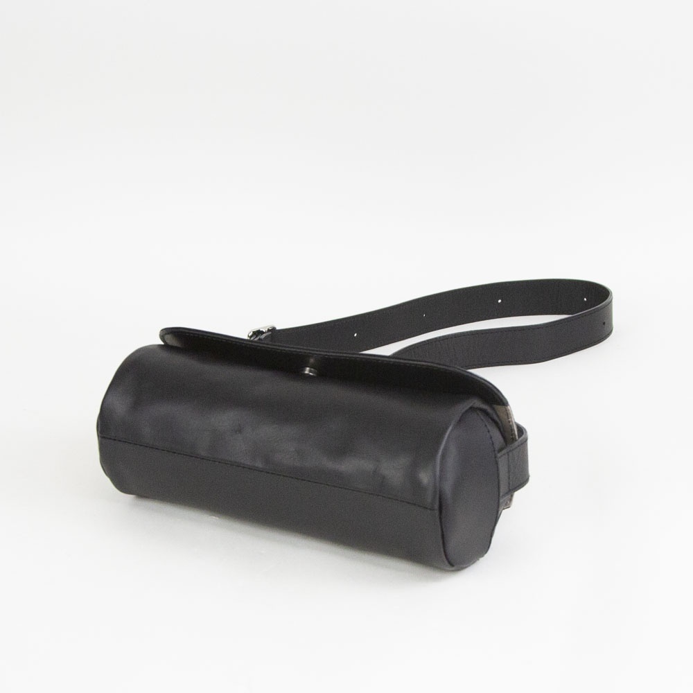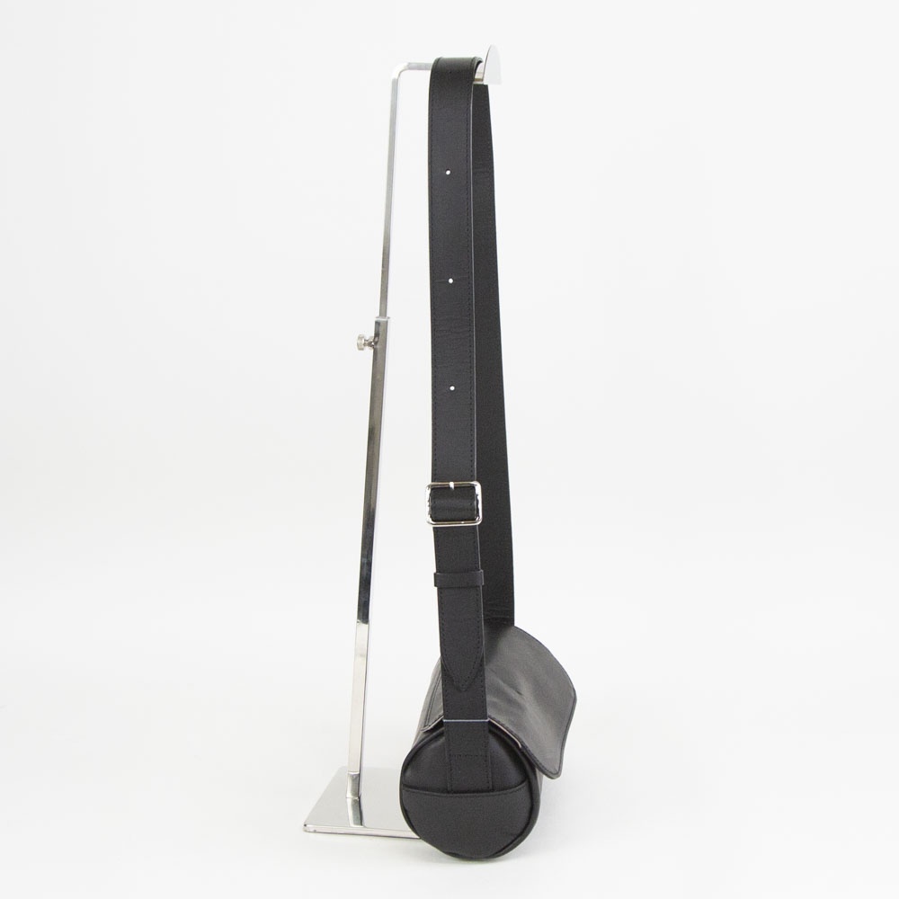 きめ細やかな牛革キップを使用したチューブ型のショートフラップショルダーです。ショルダーストラップは7段階の調節が可能で斜め掛けも可能です。フラップをめくるとファスナーがついているのでボディーバッグのように背負うように持っても中身が落ちることはありません。フラップ部分はずれないようにマグネットがついています。見た目以上の容量があり、折財布、ポーチ、コインケース、眼鏡ケース、カードケースと必要なものはすべて収納可能です。