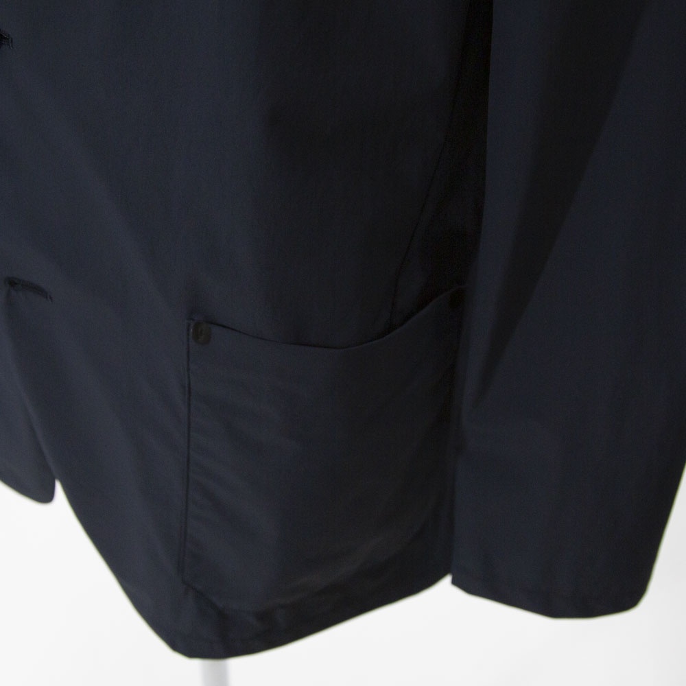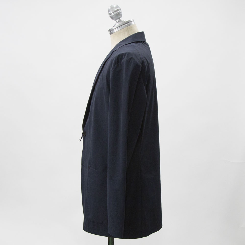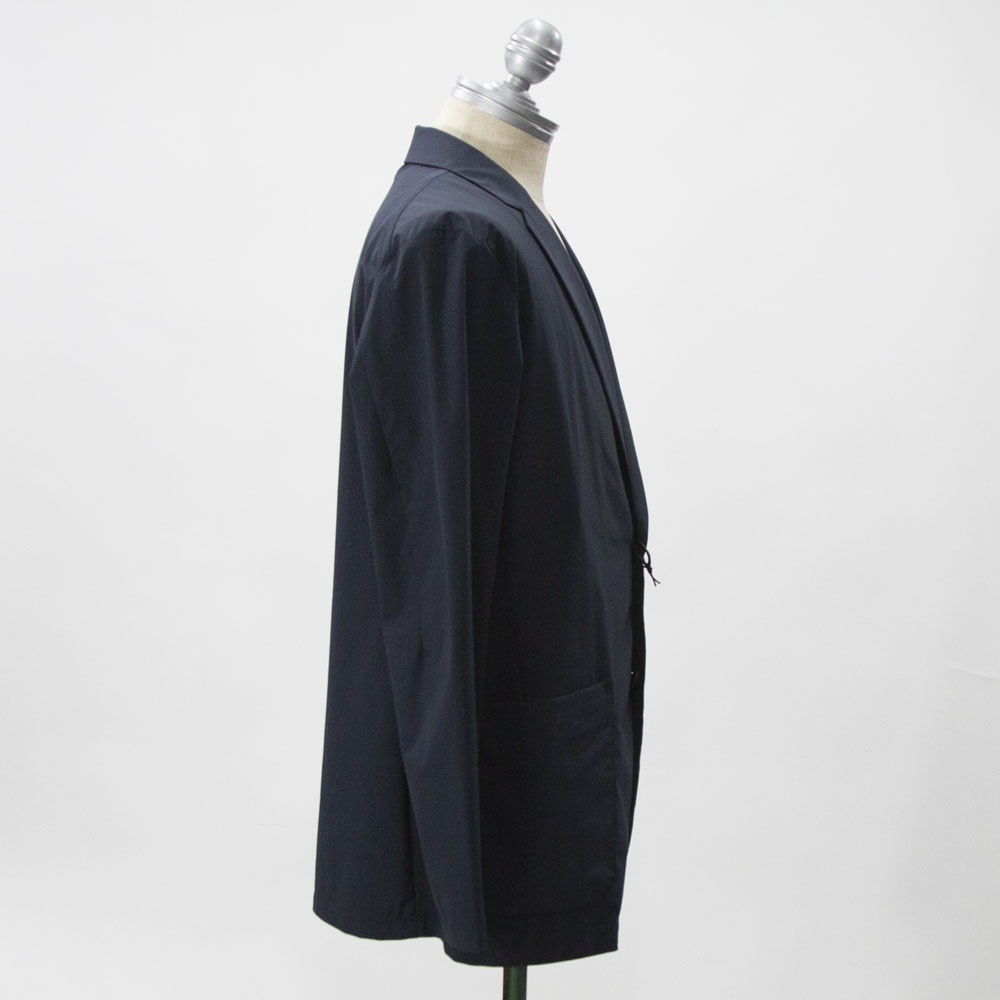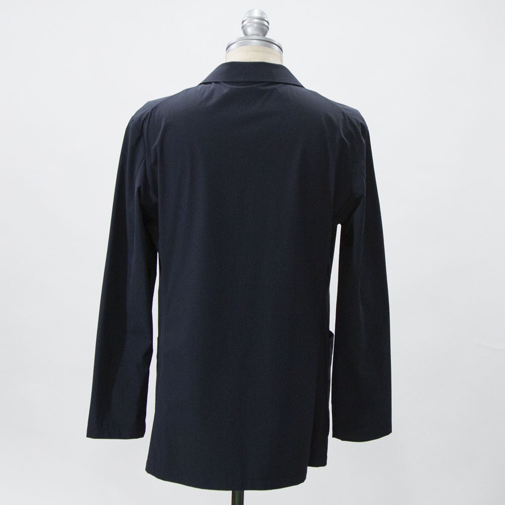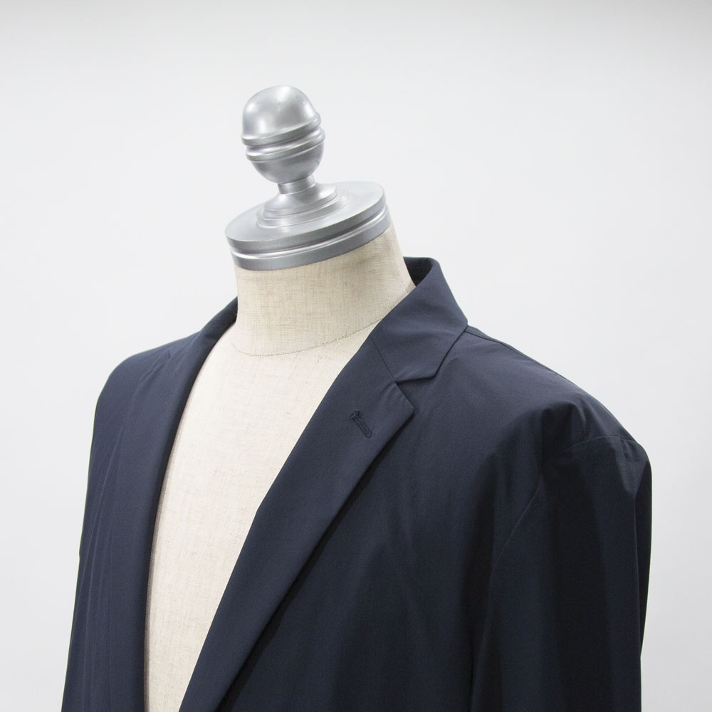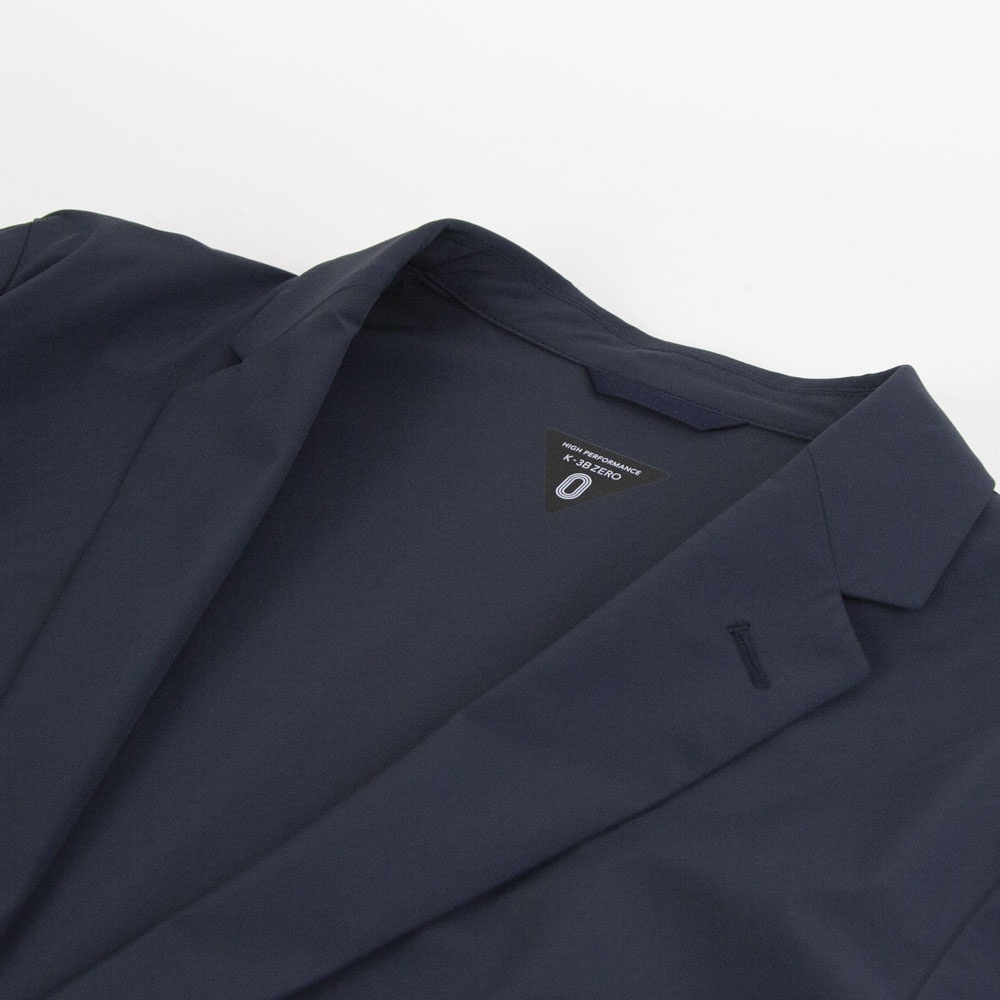 縫い目を極力排除したミニマルな構造で、スマートな印象と高い運動性能を両立したアクティブシングルジャケット。背面には切り替えやベントラインがなく、広範囲にわたってストレッチ性を確保。パッチポケット部分には俵型の圧着パッチを配し、強度を補強。さらに、消臭プリントを施した三角ロゴや脇下のベンチレーション用アイレットなど、K-3B ZEROらしいスポーティなディテールを随所に採用。シワになりにくく、イージーケア性にも優れているため、出張やゴルフ、旅行など、移動の多いシーンでも快適さと品格を両立できる1着です。