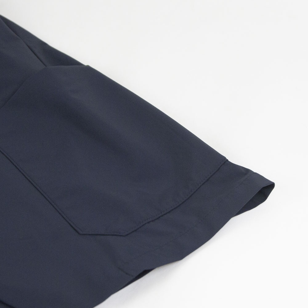 定評のある「R生地」を採用。経糸・緯糸ともにポリウレタン混の糸を使用した4WAYストレッチ素材で、K-3Bの布帛アイテムの中でも最も高い伸縮性を誇ります。フルダル糸によるマットな質感と、パウダータッチの滑らかで肌離れの良い風合いが特長。軽量で丈夫、さらに撥水性も備えており、天候を問わず快適に着用可能。ビジネスからスポーツまで、あらゆるシーンに対応するハイスペックな機能素材です。