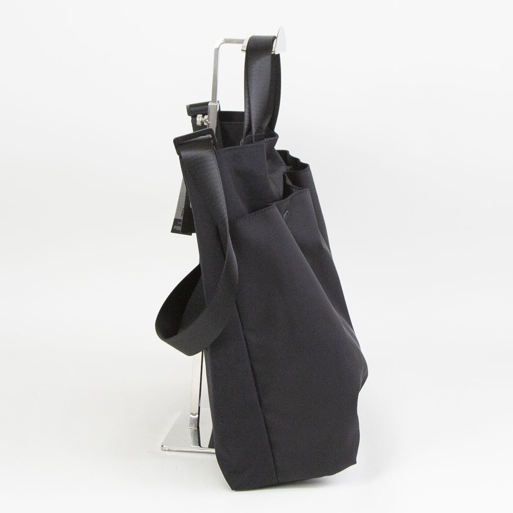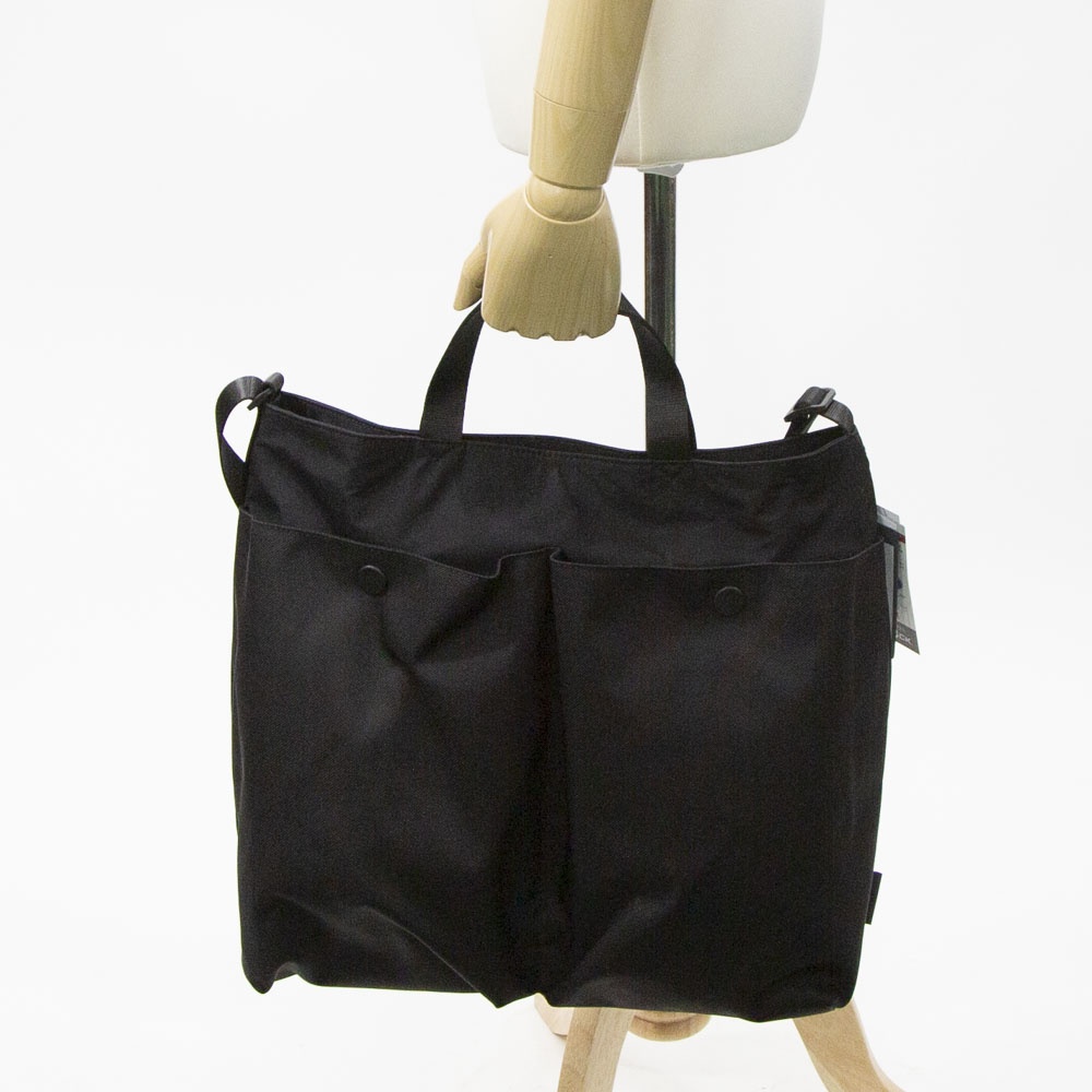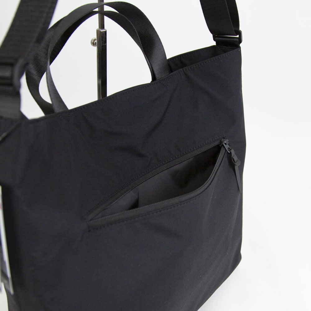 フィドロックのマグネットパーツを使用したフロントポケットと、ボディーの素材が切り替えが特徴のデザインの2WAY BAGで、カジュアルな通勤バッグとしても使用いただけます。 内側両サイドにはボトル収納・傘収納用ポケットがついておりすっきりと綺麗に使用ができます。 フロントポケットはパーツを左右外側へずらすと開けることができ、閉める際はそのまま楽にはめ込むことができます。