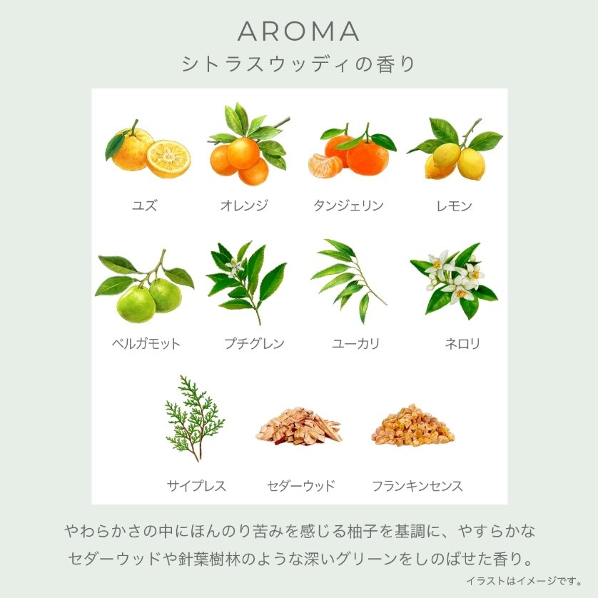 夢の中へと誘うような、柚子を基調としたシトラスウッディの香りです。