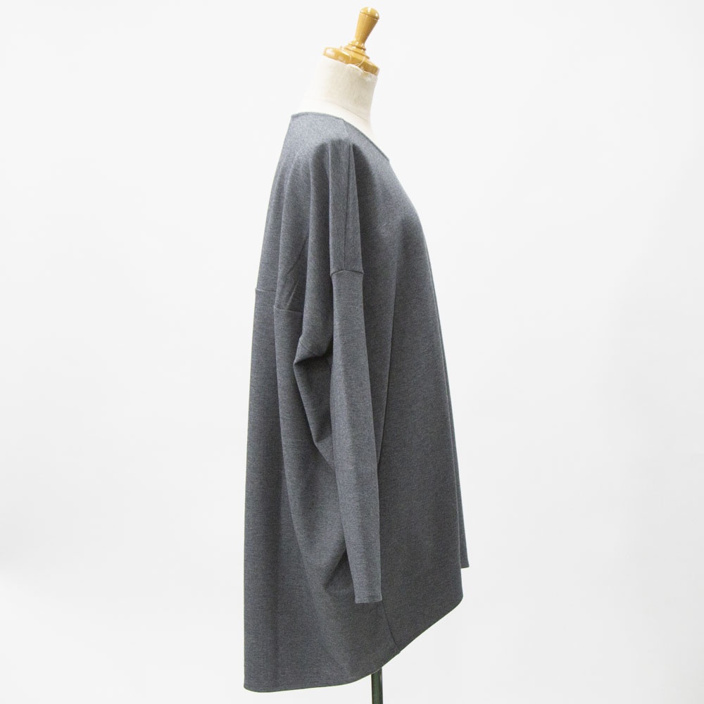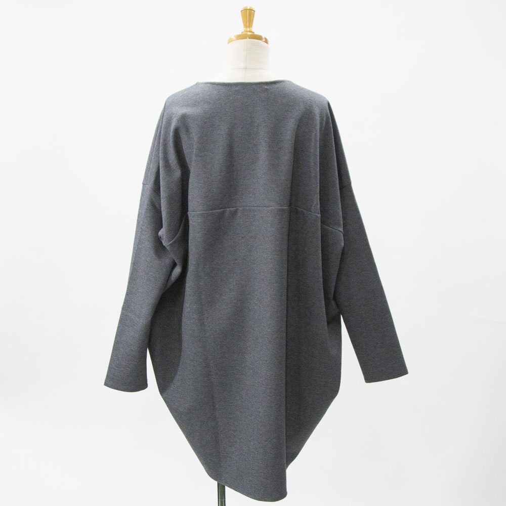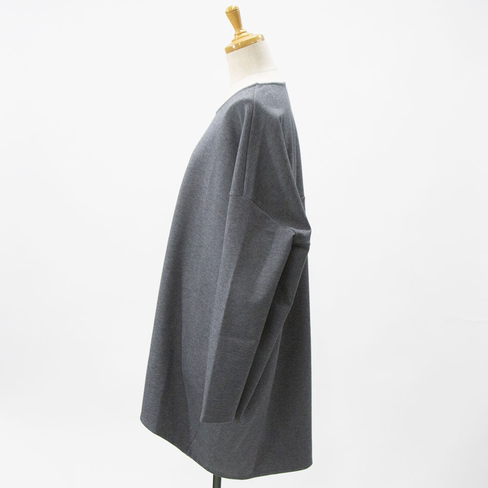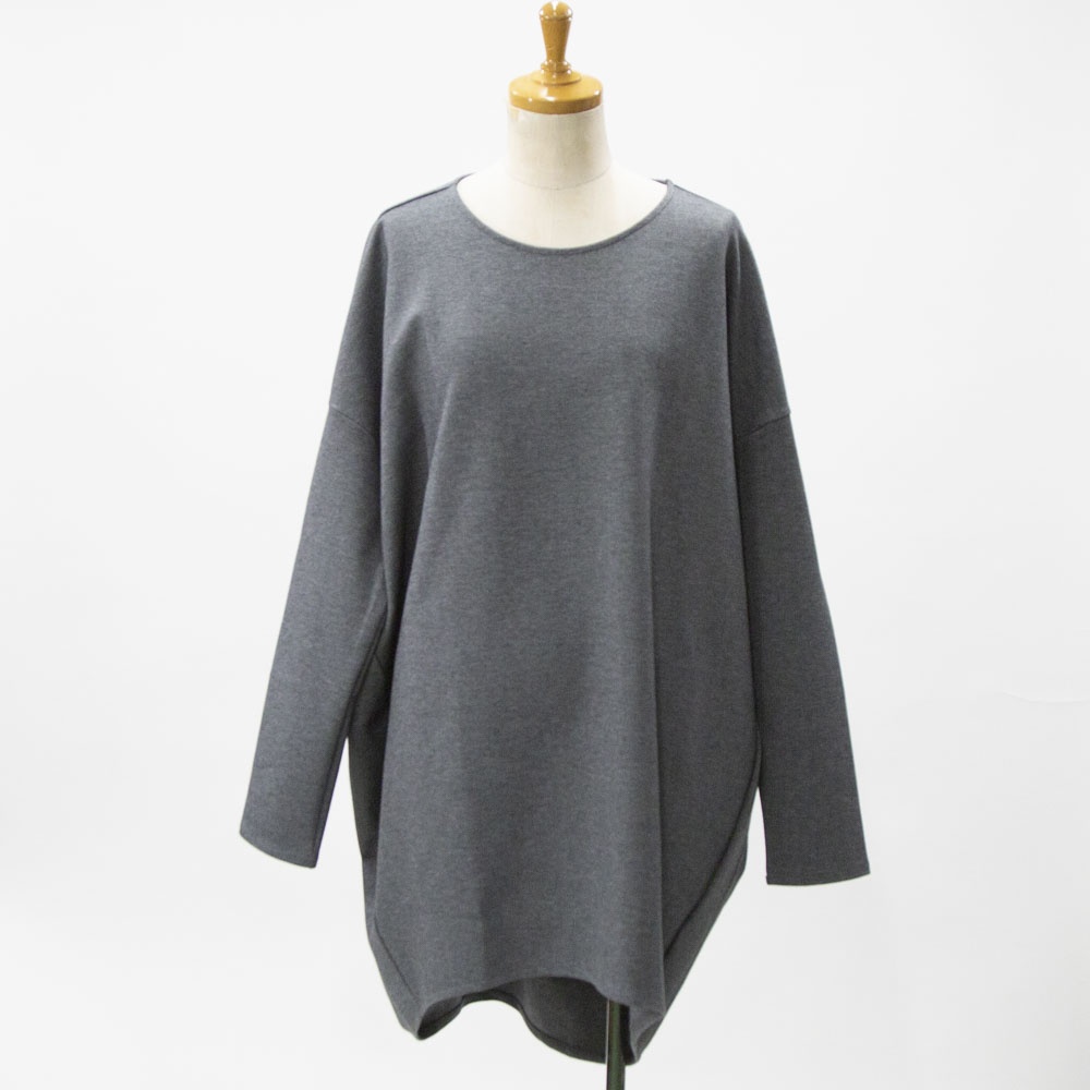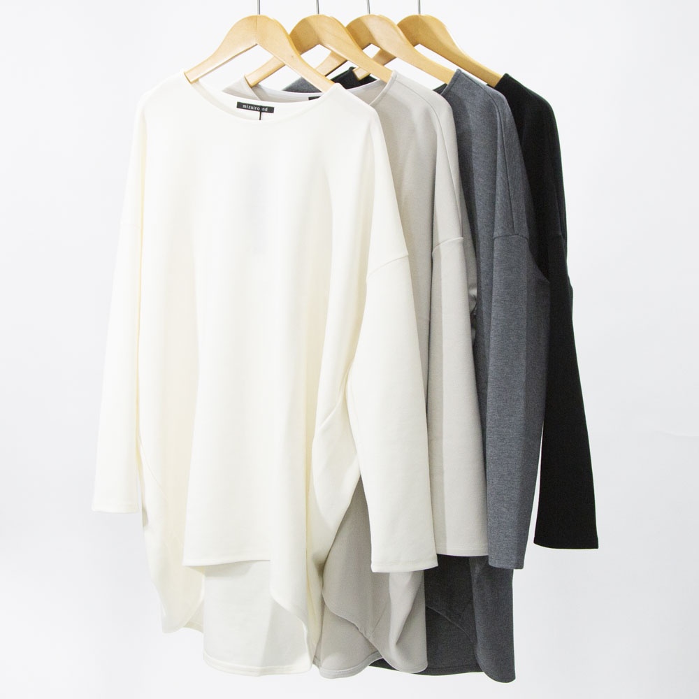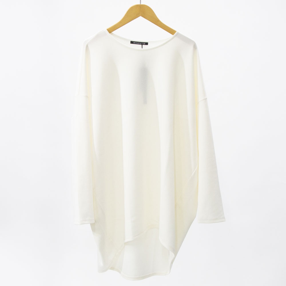 mizuiro ind人気型クルーネックコクーンプルオーバーが今季も登場。ストレッチ性のあるなめらかな肌触りのカットポンチ素材。型崩れも少なくお洗濯もしやすいのもポイント。裾は前後差の付いた丸みのあるシルエットです。パンツでもスカートでも相性◎。