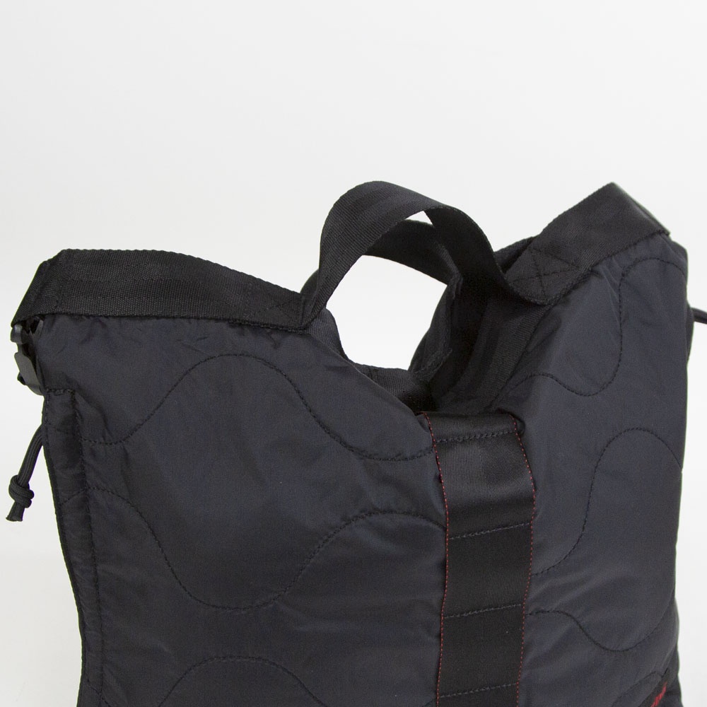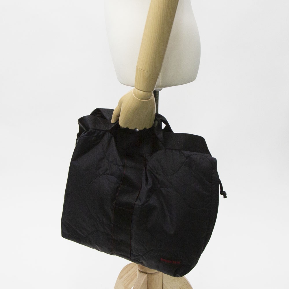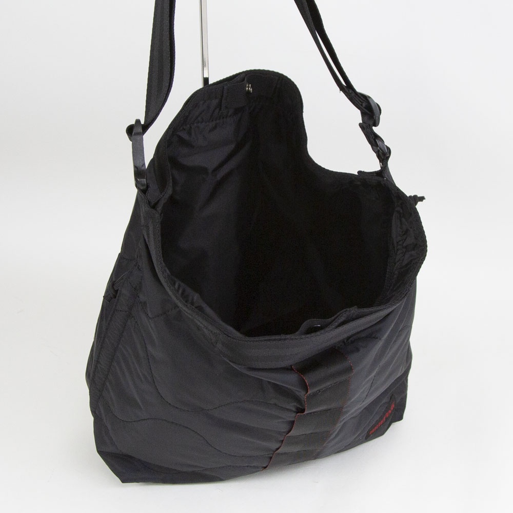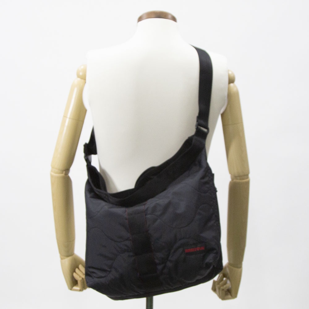 キルティングナイロンを使用したアイテムが新登場。 ショルダー根元がバックルタイプで長さを短めにしていても着脱しやすい様になっています。 収納口に持ち手を備えているので2WAYでも使用できます。 二つある内ポケットは内外どちらからでもアクセスできる面白い作りになっています。
