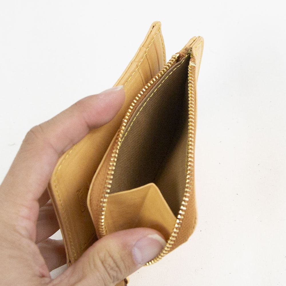 定番シリーズに新たなモデルが新登場。 外付きの小銭スペースは開きが良く視認性もしっかりしてます。 両面仕様のカードポケットは長財布にも劣らない容量となっております。 使い始めは、やや硬い質感ですが、使ううちに徐々に繊維がほぐれ手に馴染み柔らかくなっていきます。 黄色のステッチは日焼けした革との相性も抜群です。