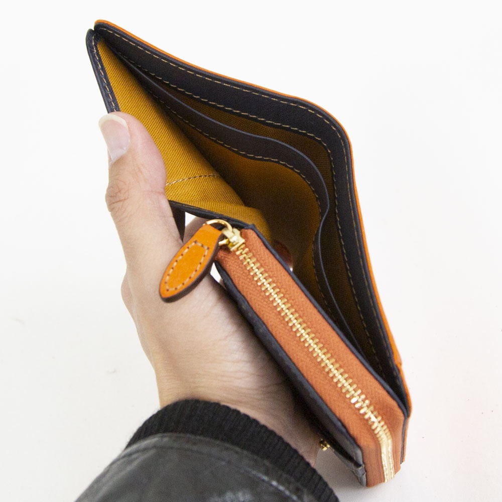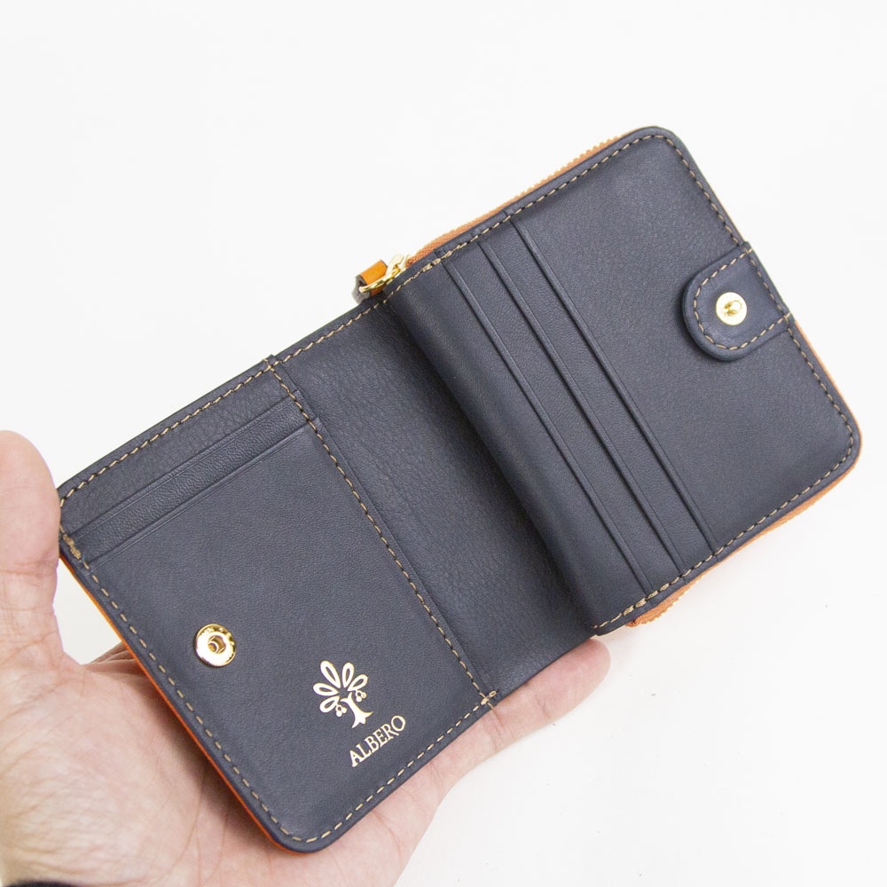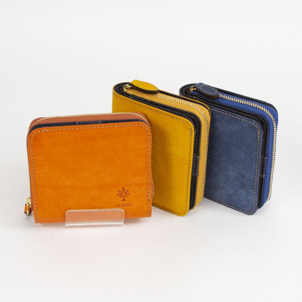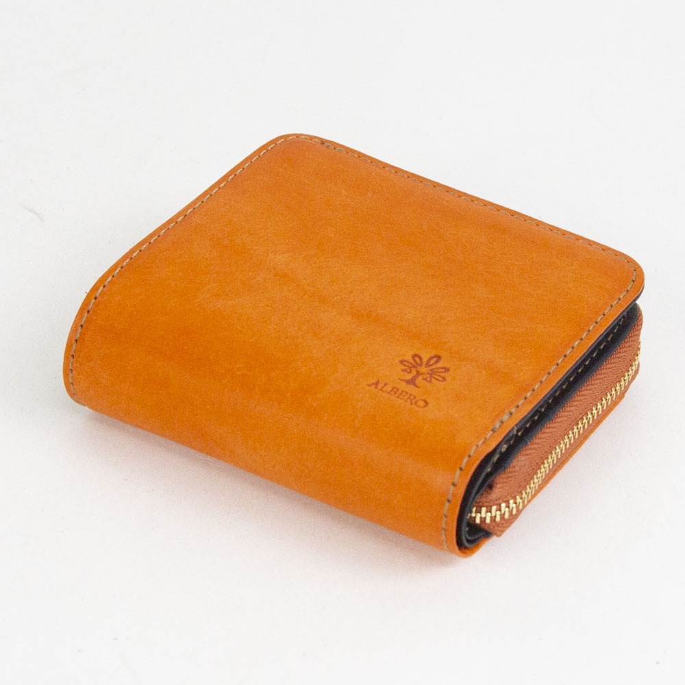 バケッタ製法によるタンニン鞣しで吟面を擦ったスクラッチ加工と発色の良さが特徴になります。 円弧を描く様なスクラッチ跡を泡に見立ててSchiuma(イタリア語で泡)とシリーズ名がついています。 両面仕様のカードポケットは縦横の仕切りでどの向きからでも取り出しやすくなっています。