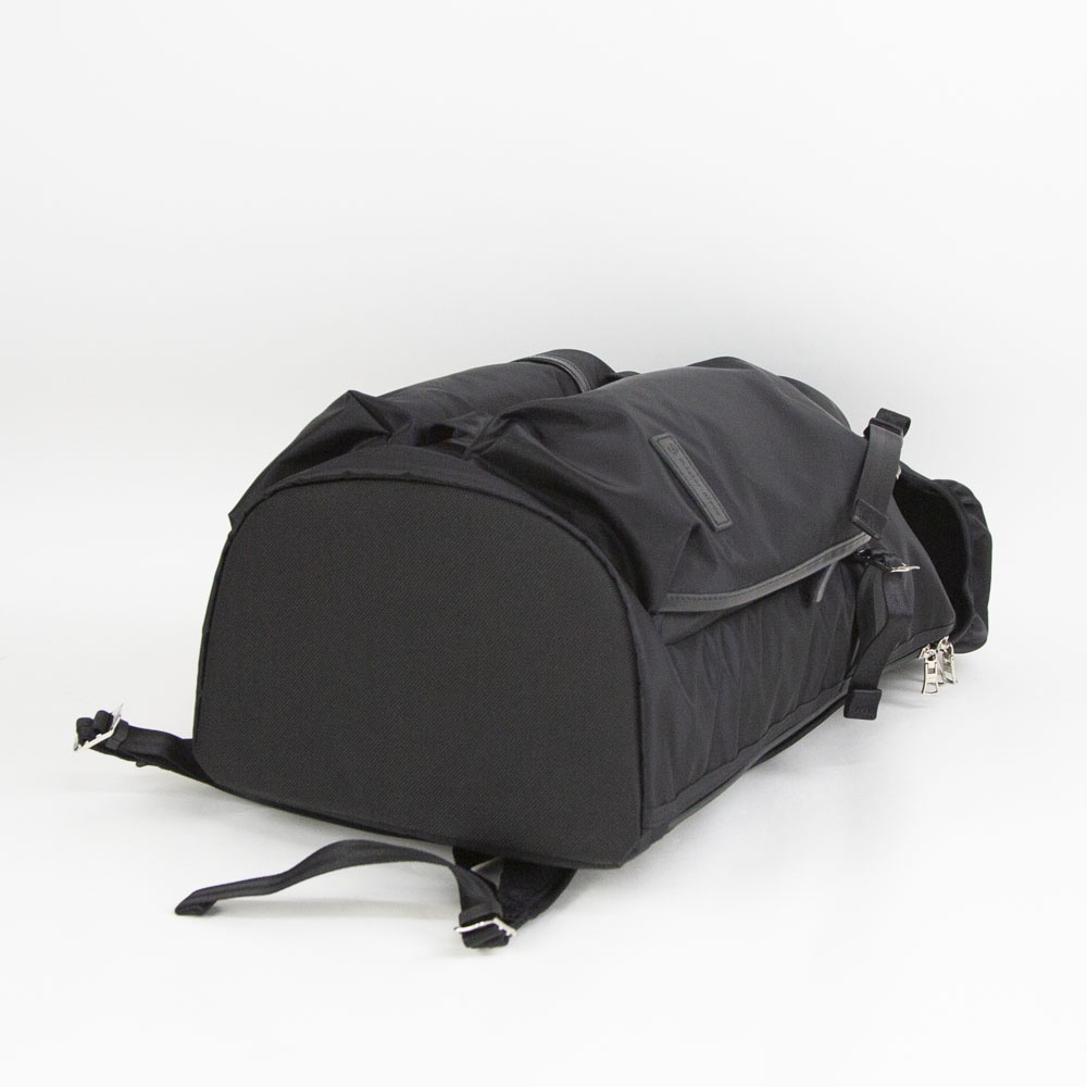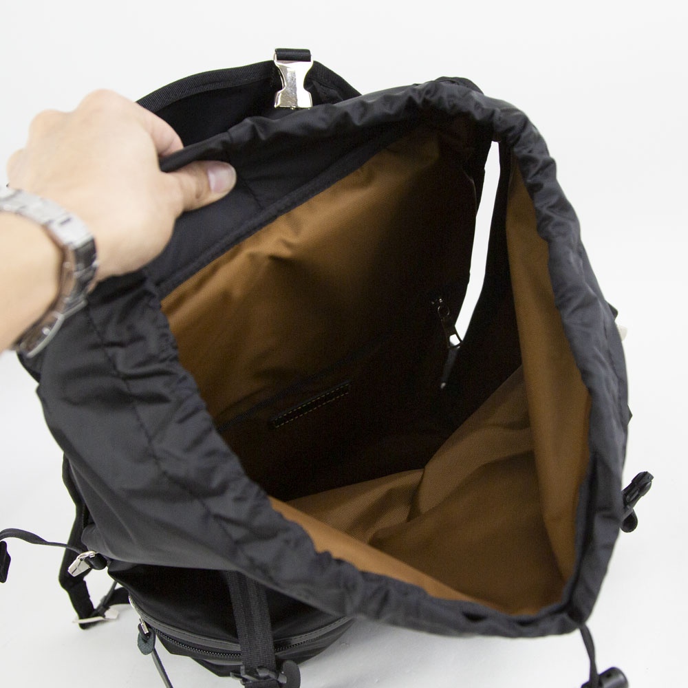 本体素材には、タテ糸に70d、ヨコ糸に210d のナイロンセミダル糸をインチ間でタテ275 本、ヨコ82 本の高密度で織り上げてハリ、コシを持たせた超高密度ナイロンツイルを使用しています。
