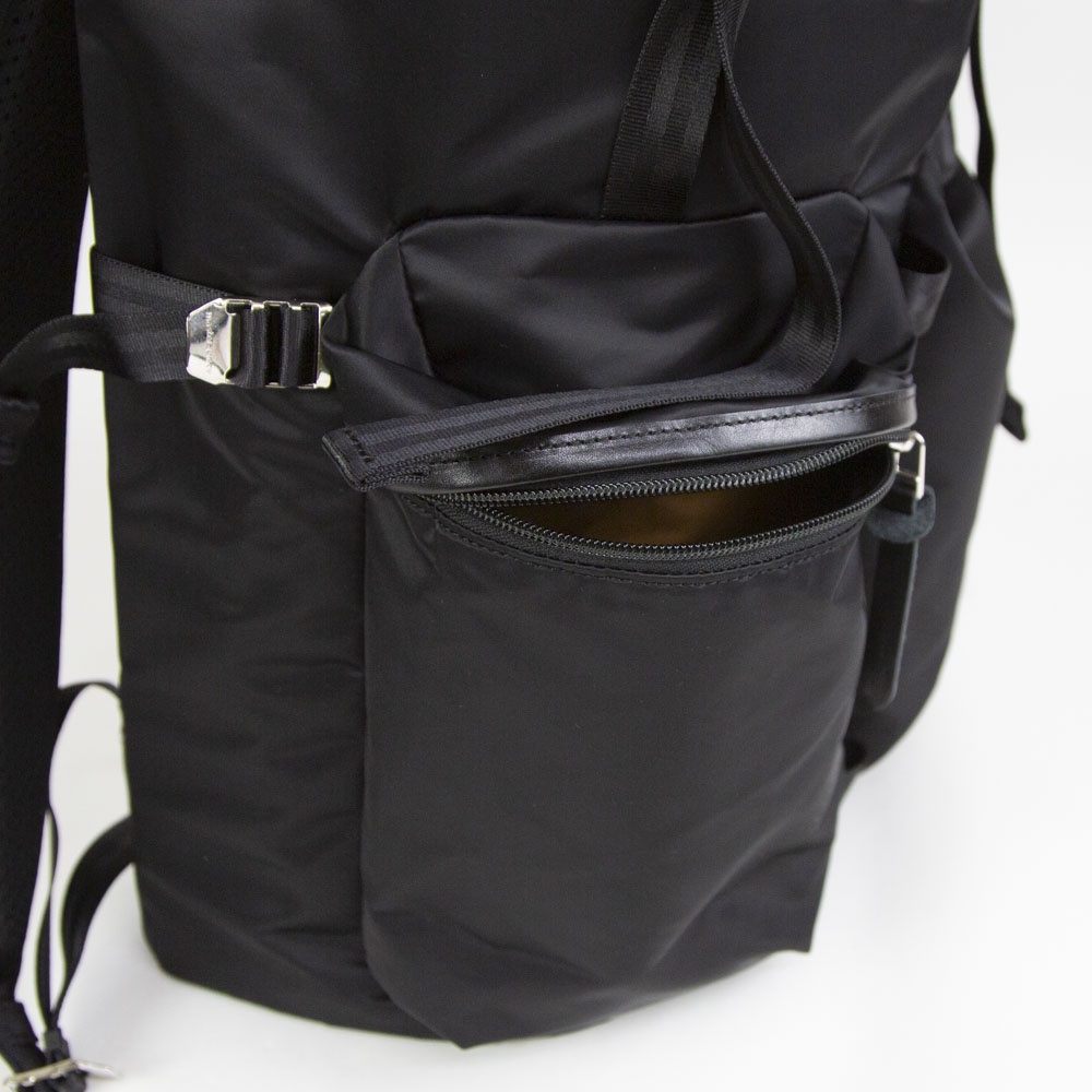 付属素材には通常のナイロンよりも耐久性を持ち、摩擦・引き裂きに強い CORDURA Ballistic® fabric1680d ナイロンを使用し、タテ840d 横ヨコ40d の撚った糸を二本ずつ引き揃えることで、より摩擦・引き裂き強度が強化され、表面には撥水加工、裏面にはPUコーティングを施しています。