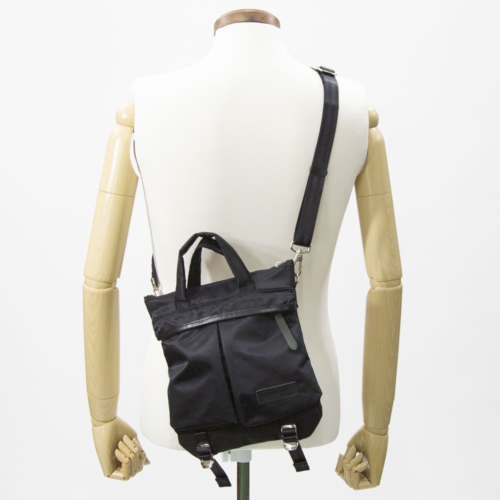 本体素材には、タテ糸に70d、ヨコ糸に210d のナイロンセミダル糸をインチ間でタテ275 本、ヨコ82 本の高密度で織り上げてハリ、コシを持たせた超高密度ナイロンツイルを使用しています。