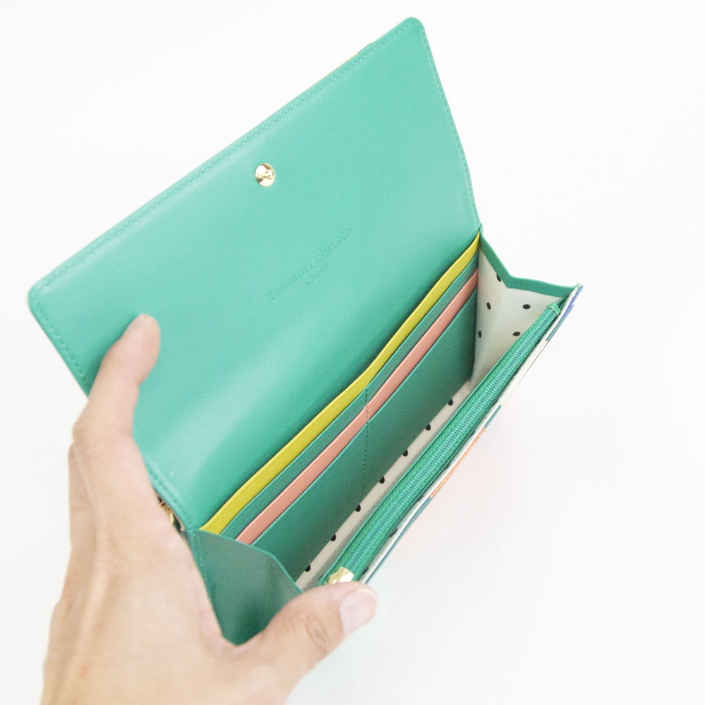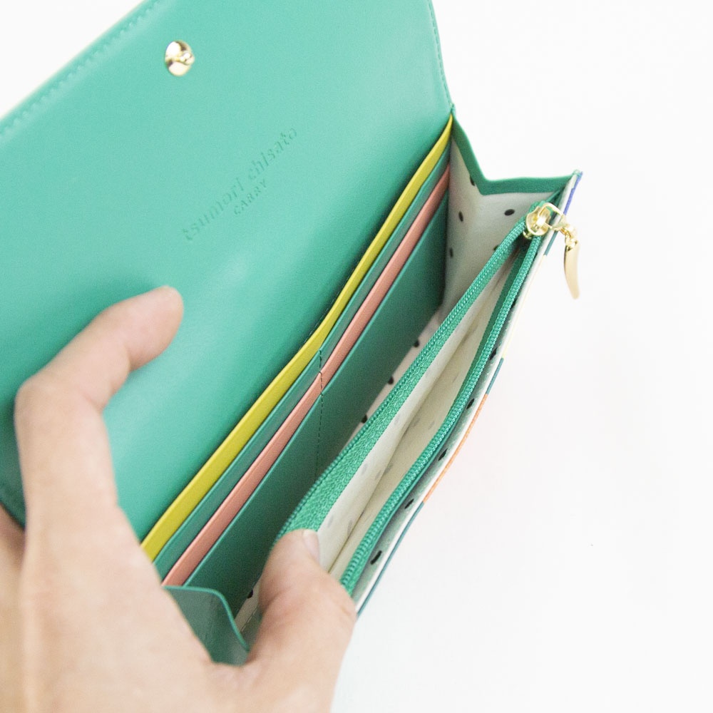 2025AWの新作カラフルズームドットシリーズ。 象徴的な大人の可愛さを存分にデザインに落とし込んだ新作シリーズです。 世界観を感じる配色や幼さを感じさせないツモリチサトらしいシリーズとなっています。 ガマ口の長財布タイプはアイコニックなカラフルながま口デザインと高い収納力が魅力的な商品です。