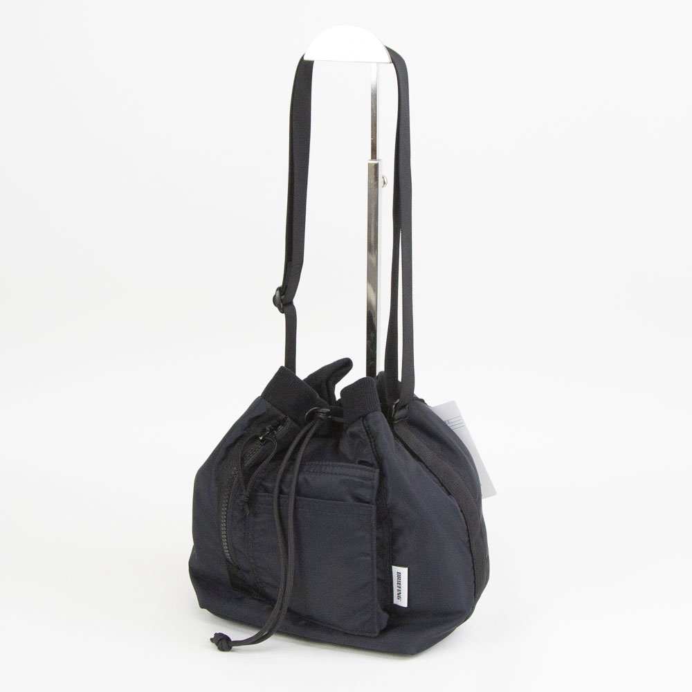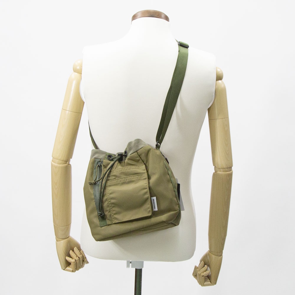 ・貴重品と小さいペットボトルなどが入る容量感。 ・フロントのオープンポケットにはスマホなどを収納するのに便利。 ・フロントに配したジップポケットはジップのエンド部分にテープを配置。 ・ジップを下した際に中に入れた小物が飛び出さないように配慮されている。 ・MA-1ジャケットに見られるシガレットポケットのデザインを落とし込んだポケットをフロントに配置し、BREFINGらしいミリタリズムを表現。