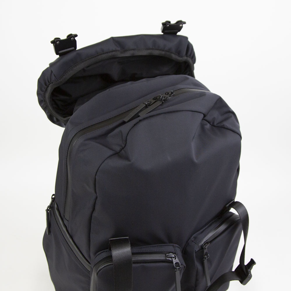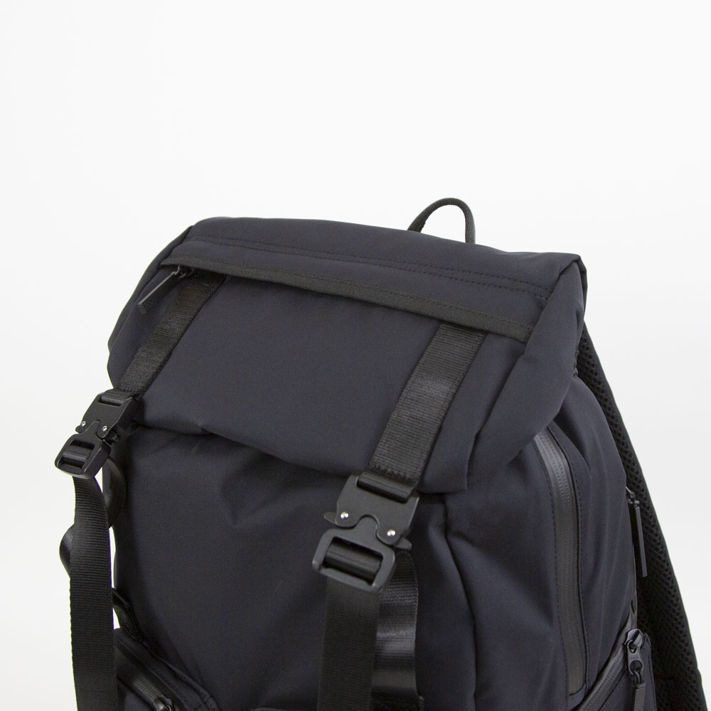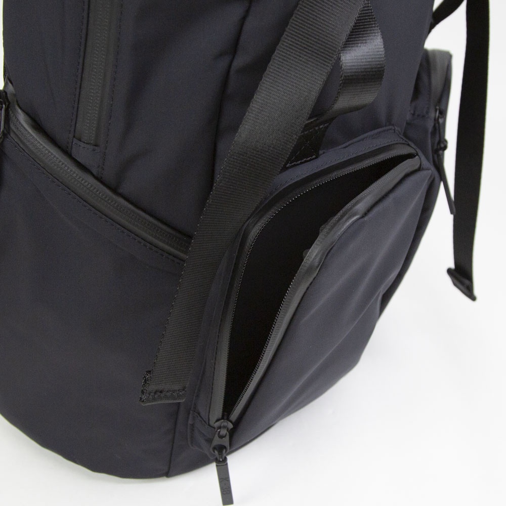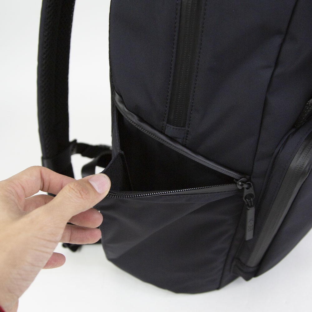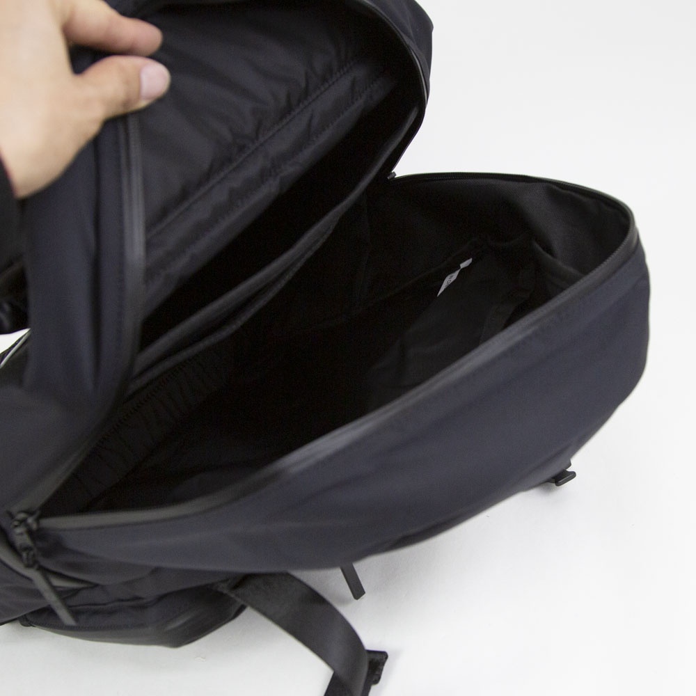 都市に求められるあらゆる要件を満たすよう設計された本製品は、耐水圧20,000mm・透湿性6,000g/㎡/24h(JIS L 1099 B1法)というアウトドアレベルの透湿防水3レイヤー素材を、ボディ全体に採用。素材自体が極薄かつ軽量で、ビジネスバッグとしてフルスペック仕様でありながら、総重量約1,000gを実現。