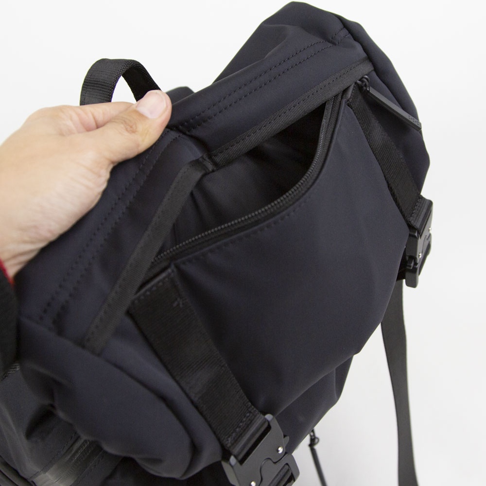 外装のファスナーはすべて止水仕様で雨の侵入を防ぎ、高強度のストラップやバックルを採用するなど細部まで雨と日常に備え、都市生活に不可欠な機能を精密に設計しました。
