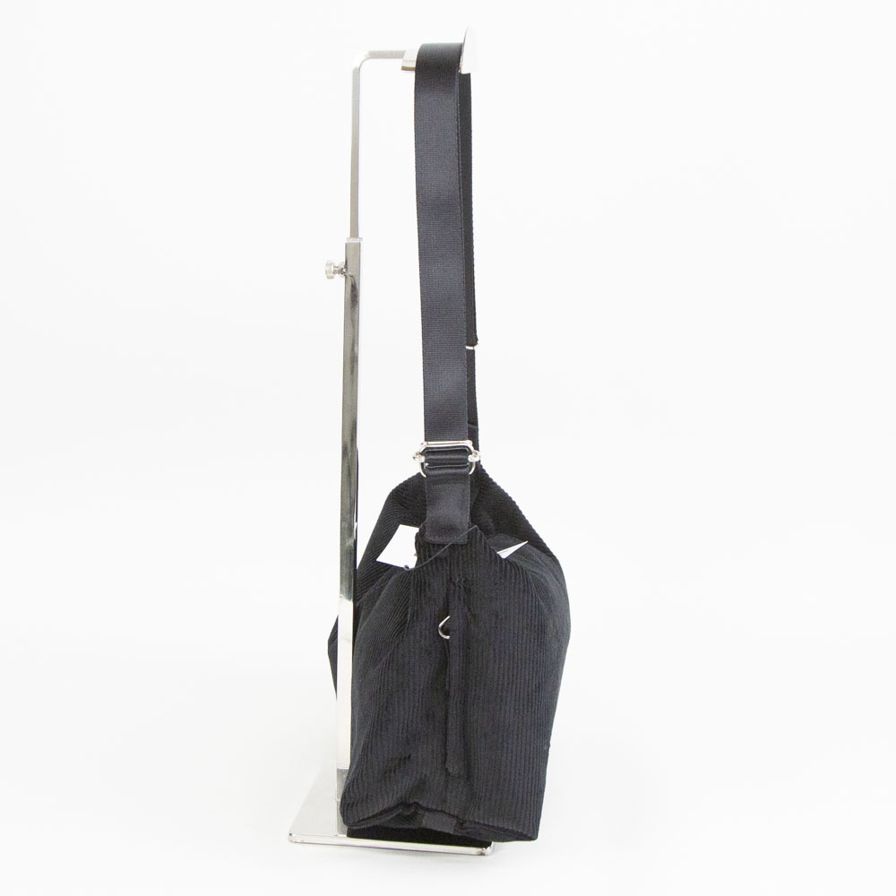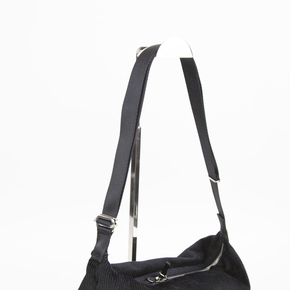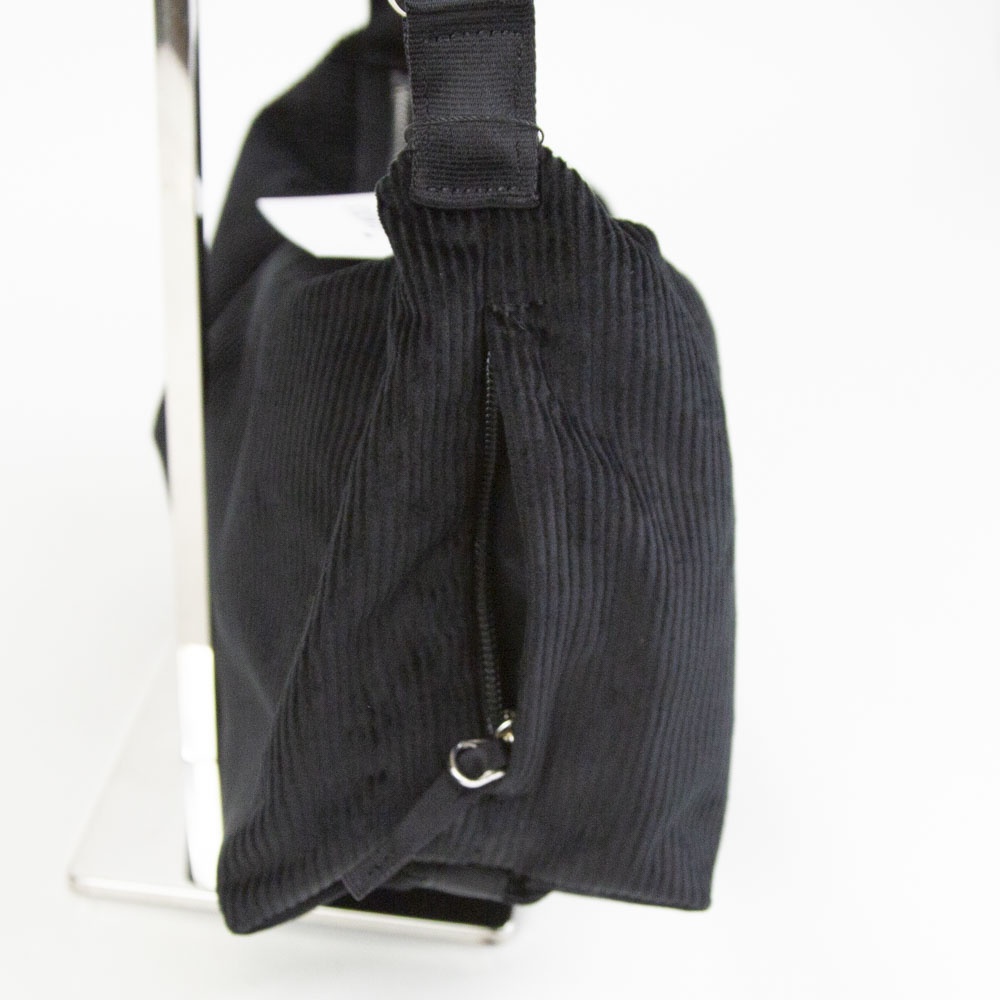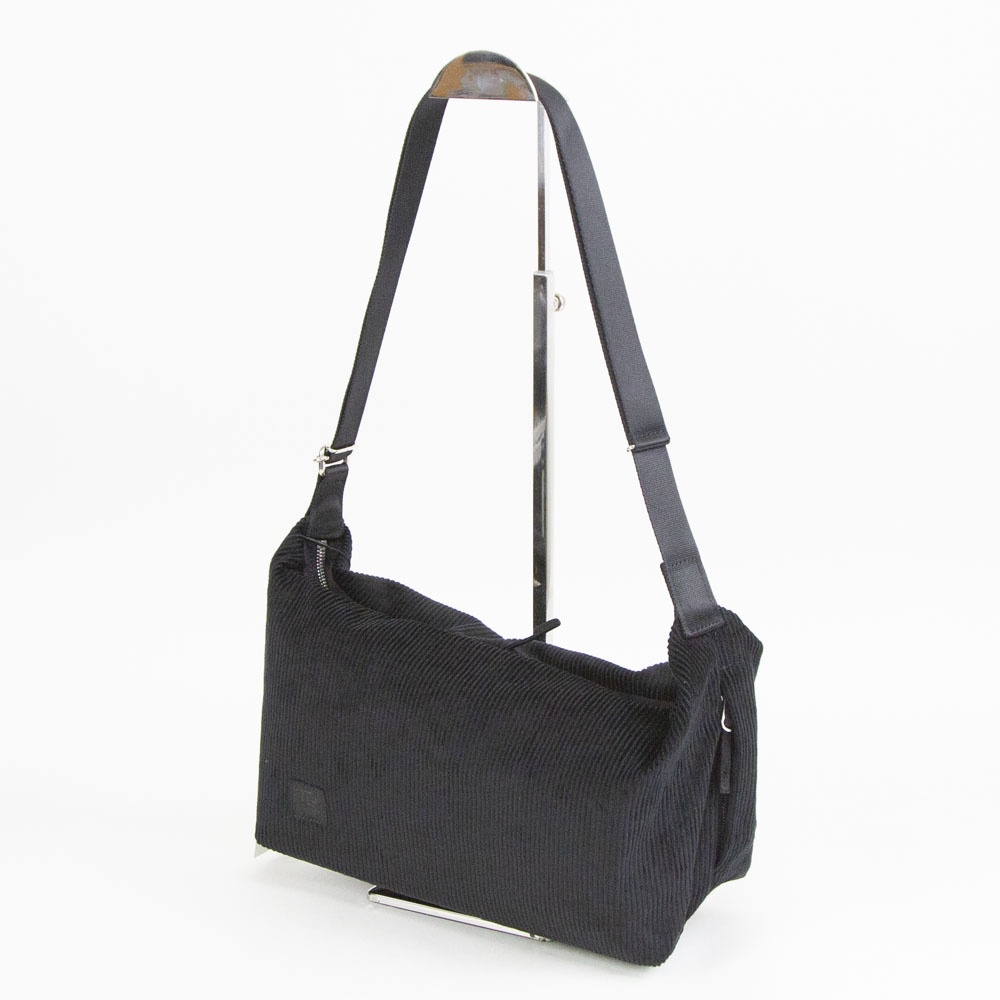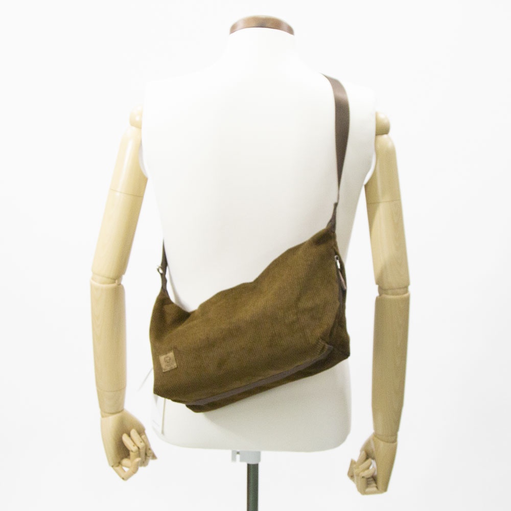 オーガニックコットンで織り上げたコーデュロイを使用したショルダーバッグ。メインファスナーは非常に滑りが良く、片手でも開閉しやすい YKK シンメトリーファスナーを採用。金属パーツは丸みを帯びたシルエットを排除して、敢えてエッジを効かせたパーツを選定。可動しやすいショルダーストラップ、両サイドにはファスナー式モバイルフォンポケットを装備して、コーディネイトやライフスタイルにフィットする機能を備えました。物を入れると自然に下に撓むシルエットが魅力です。