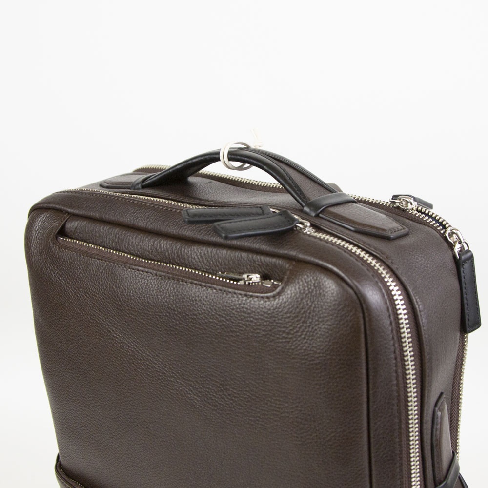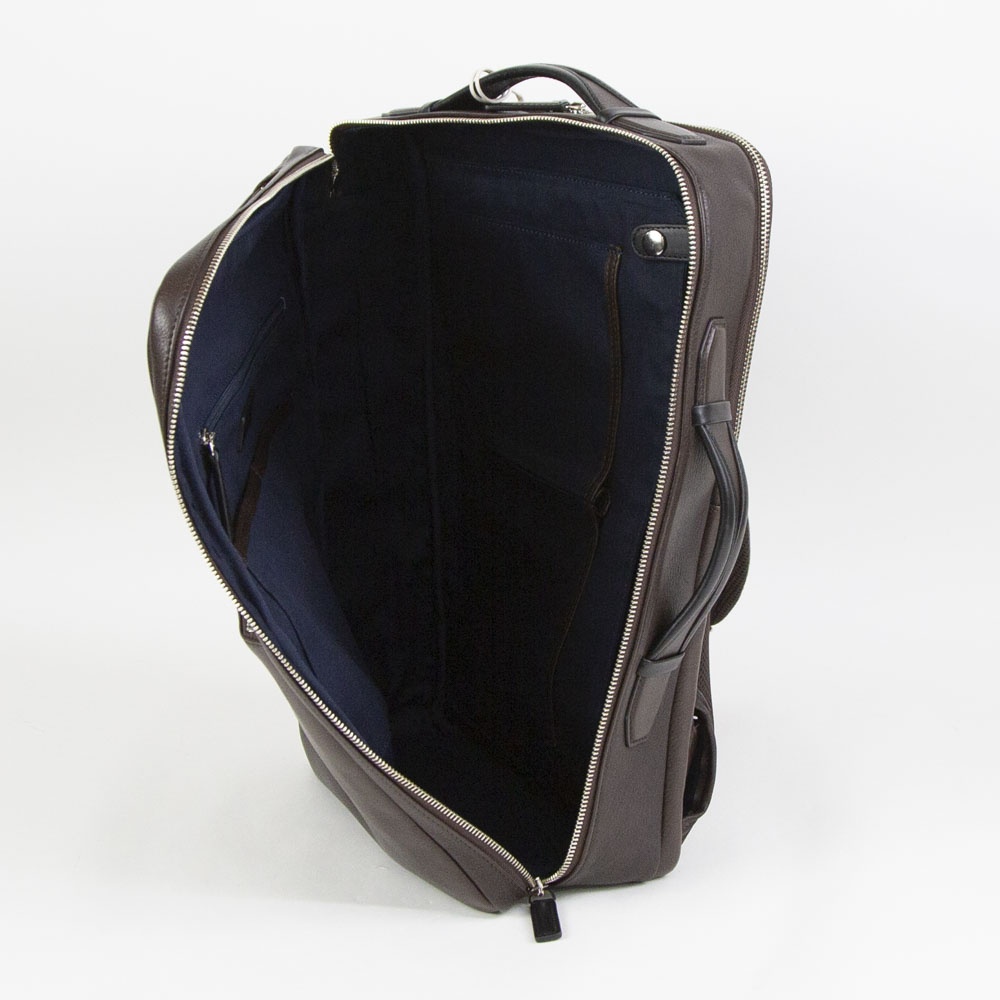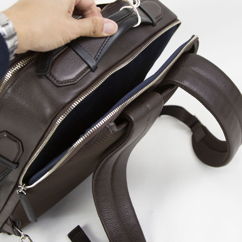 書類やPCの収納に最適化されたサイズと多彩な収納機能はスムーズな出し入れと細かな仕分けを可能にし、慌ただしいビジネスシーンをサポートします。背中側に設けたPC専用のコンパートメントはファスナーひとつでアクセスでき、クライアントの前や空港のチェックポイントでの所作もスマートでスピーディに。15インチまでのノートパソコンが収納できます。