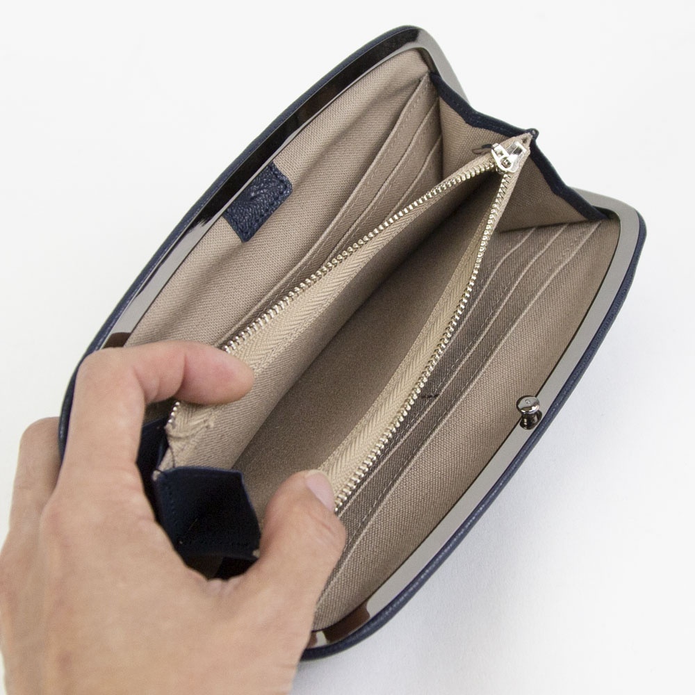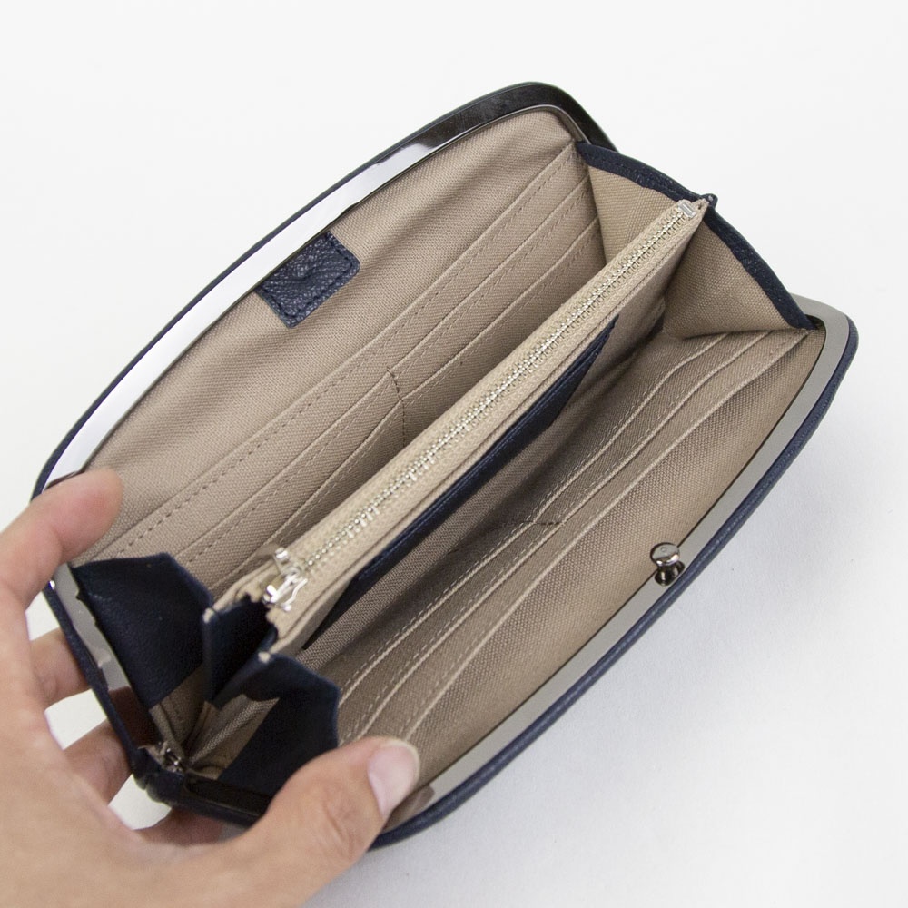 mononoguでは定番のヤギ革を使用した変形がま口の長財布です。